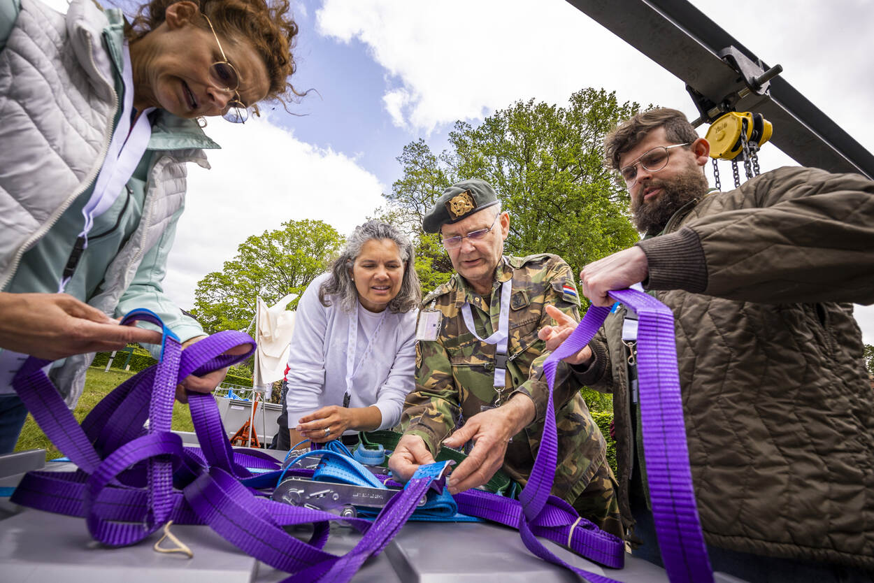 Een museum dat met robuuste werktuigen van Defensie fragiele kunstwerken verplaatst. Het lijkt tegenstrijdig, maar gisteren demonstreerde het jubilerende Wapen der Genie (275 jaar oud) bij Museum Bronbeek hoe dat in zijn werk gaat. Zo’n honderd specialisten van musea uit de hele wereld streken neer in Arnhem, om te leren van dé autoriteit op dit gebied; de kleurrijke Amerikaan Kevin Marshall.