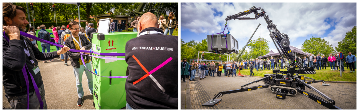 De militairen hebben er duidelijk plezier in. “Hartstikke leuk om te doen”, roept de kraanmachinist, korporaal der eerste klasse Thomas, enthousiast. “Zeker met deze nieuwe kraan, echt een topmachine. Tot voor kort hadden we kranen van dik dertig jaar oud.” Hij werkt niet voor het eerst in een museum. “We zijn al eens in Oorlogsmuseum Overloon aan het werk geweest om een Spitfire en een Sherman-tank te verplaatsen.”