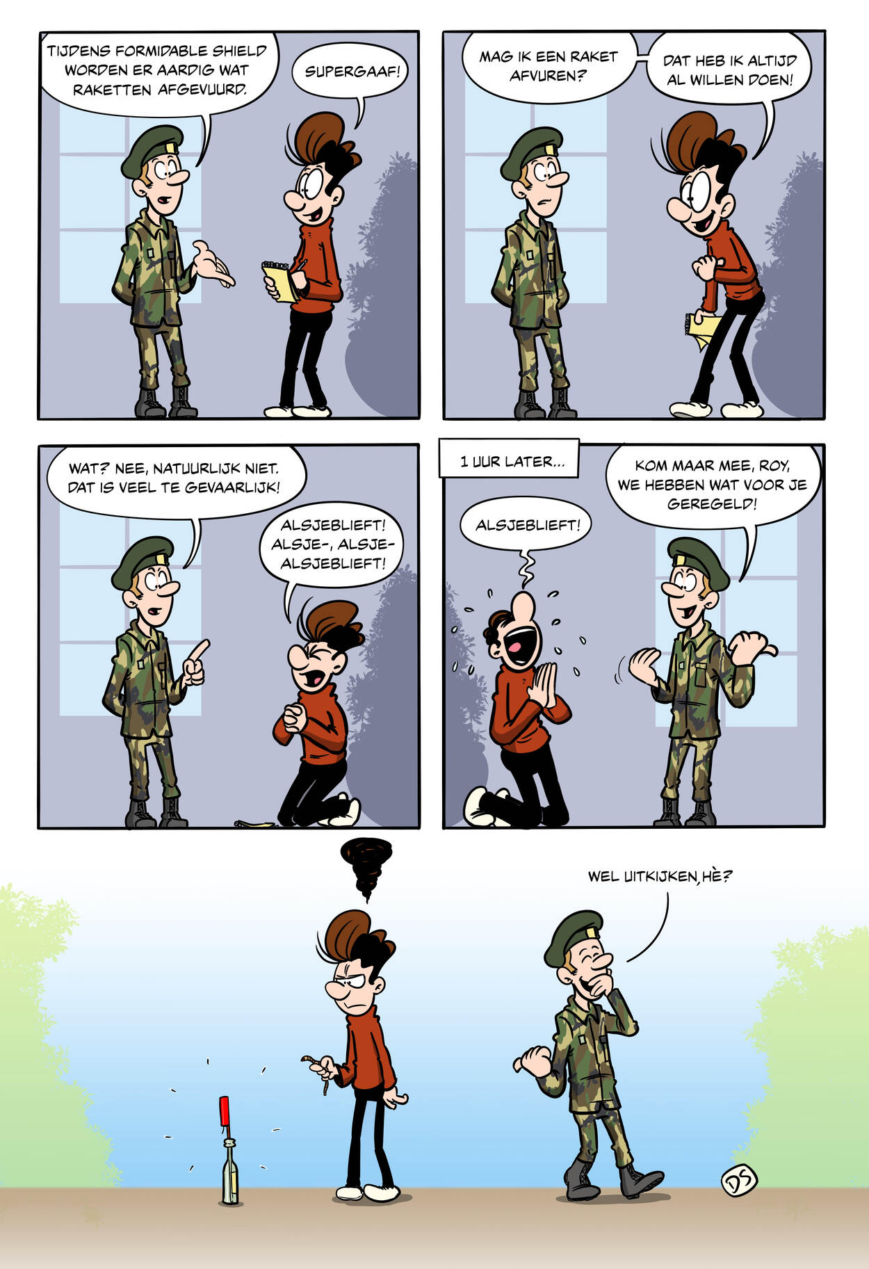 De Defensiekrant volgt de belevenissen van de ietwat onhandige en tikkeltje domme medewerker Roy. Zijn ervaringen bij de krijgsmacht worden iedere twee weken in deze strip verteld.