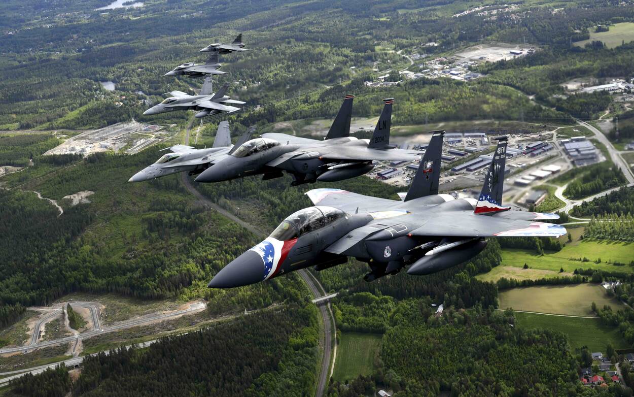 F-15E Strike Eagles, behorend tot 494th Fighter Squadron, vliegen in formatie met bondgenoten tijdens Arctic Challenge Exercise 2023. Met deelname van 150 vliegtuigen en drieduizend man personeel uit veertien landen een van de grootste vliegoefeningen in Europa. Nederland was vertegenwoordigd met F-16’s en F-35’s. ACE 2023 wordt om het jaar georganiseerd door Noorwegen, Finland en Zweden en speelt zich dan ook voornamelijk af in het luchtruim van de noordelijke regio's. Samenwerking tussen de Scandinavische landen staat centraal bij de ACE23-oefening. Het doel is de aanwezige eenheden te trainen in het uitvoeren van complexe grootschalige luchtoperaties. (courtesy photo)