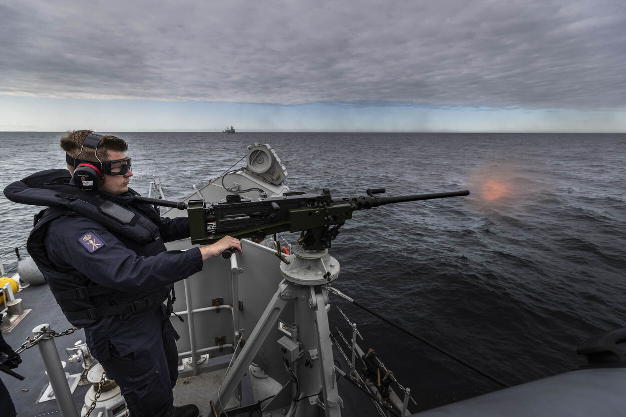 Nog eentje uit de oefening BALTOPS. Serieus geconcentreerd worden schietoefeningen afgewerkt op Zr. Ms Vlaardingen die samen met Zr. Ms. Makkum deel uitmaakt van de Standing NATO Mine Countermeasures Group 1. Het vlootverband is actief in de Baltische Zee tijdens de oefening Baltic Operations 2023 (BALTOPS 23). (foto: sergeant-majoor Robbert Harteveld)