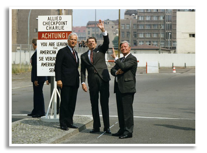 Op het hoogtepunt van de Koude Oorlog, op 26 juni 1963, bezocht de Amerikaanse president John F. Kennedy West-Berlijn, waar hij zijn solidariteit met de inwoners betuigde door zijn beroemde woorden “Ich bin ein Berliner”. Later, op 12 juni 1987, riep president Ronald Reagan vanaf een platform met uitzicht op de Muur de Sovjet-president Michail Gorbatsjov op om de Muur neer te halen: "Tear down this wall!". Binnen tweeënhalf jaar zou het inderdaad zo ver zijn...