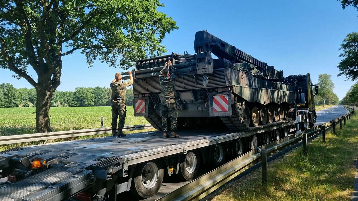 Duitse soldaten maken een Leopard 2-bergingstank 'Buffel' (in Duits: Büffel) gereed voor speciale inzet. De Bundeswehr schoot de brandweer te hulp bij de bestrijding van twee grote bosbranden in de omgeving van voormalig oefenterrein Mecklenburg-Vorpommern. De 'specs' van de Buffel zijn indrukwekkend: Lengte: 9,07 meter, Breedte: 3,54 meter, Hoogte: 2,92 meter (inclusief zwaailicht), Gewicht: 55.300 kilogram, Motor: 12 cilinder diesel, 1.100 kilowatt. Hij bergt (pantser)voertuigen en defecte tanks tot zestig ton. Een brandvrije greppel maken is dan ook een fluitje van een cent voor deze krachtpatser! (foto: Bundeswehr, Ulrich Metzler)