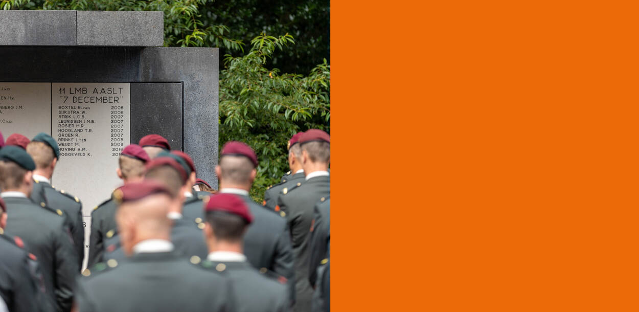 11 Luchtmobiele Brigade heeft voor het eerst een eigen herdenking op de Oranjekazerne gehouden. Vorige week vrijdag ontving generaal Schreurs familie en vrienden van gesneuvelde collega’s.