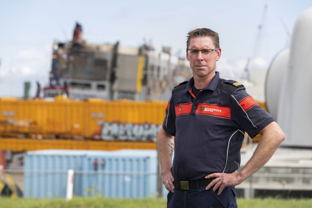 “Mocht er weer brand uitbreken, dan staan we klaar. Eerst zijn de medewerkers van het bergingsbedrijf aan zet. Zij hebben de leiding en maken een inventarisatie van wat er aan boord is, of alle dekken veilig zijn en hoe het schip eventueel leeg kan worden gehaald. Dat is niet aan ons.”