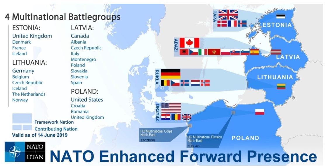 De eFP is niet alleen gestationeerd in Litouwen. Ook in Estland, Letland en Polen zijn eenheden van de NAVO gestationeerd.