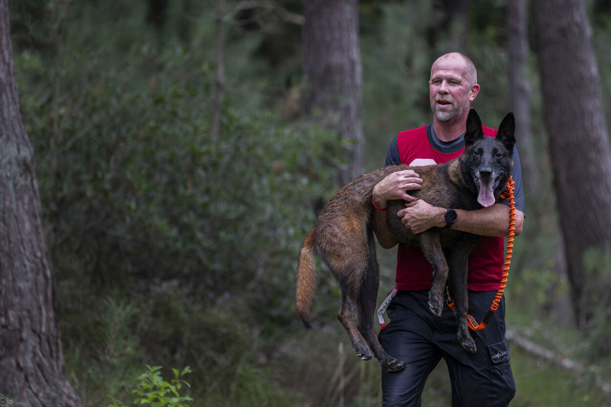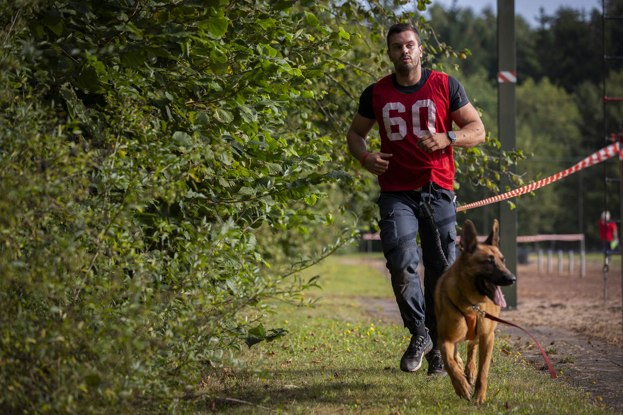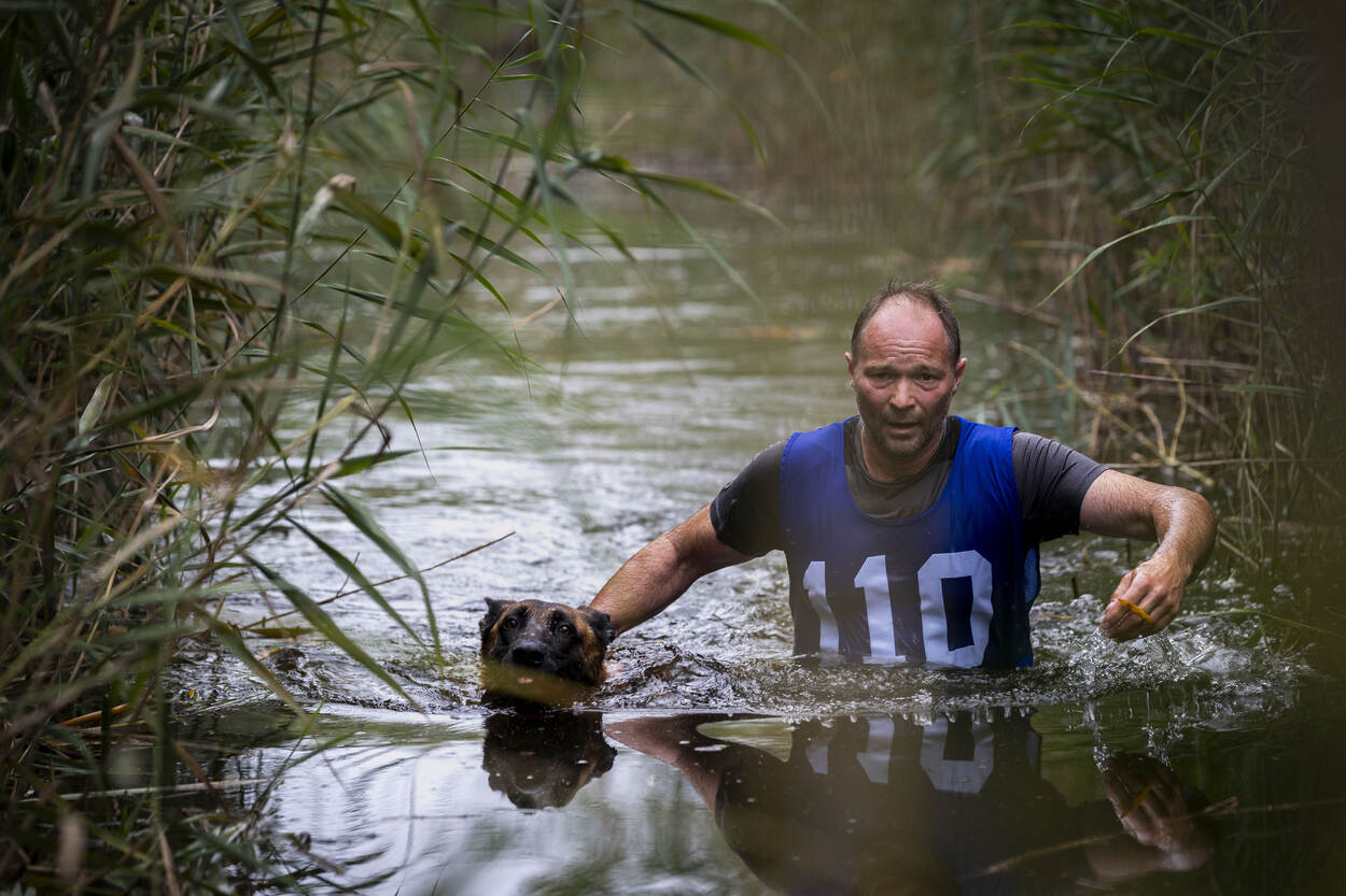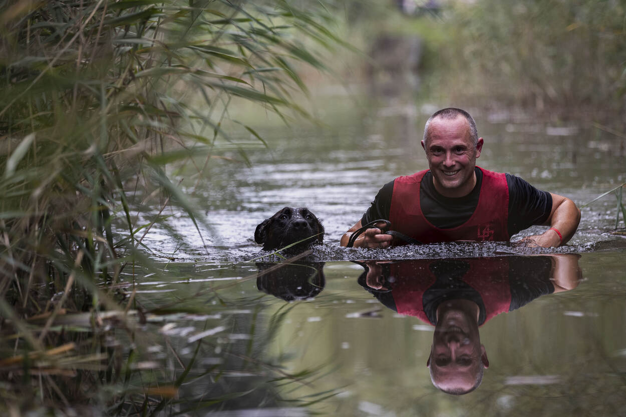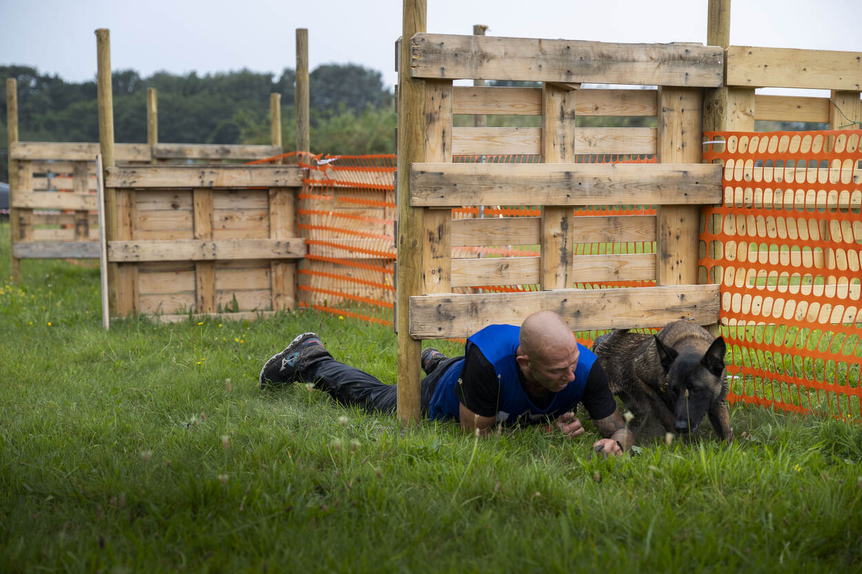 Dat heeft Martijn uit Limburg net ervaren met zijn surveillancehond Remmel. De hoofdagent is niet vies van een uitdaging, de Mudmasters staan al op zijn naam. “Dit is een heel andere belevenis. Je doet het samen. Ben jij kapot? Dan trekt je hond je er met al zijn energie doorheen.” Alhoewel… “Remmel was op een zeker moment ook best moe en kreeg een beetje een eigen willetje.” Bal gooien? Remmel vertikte het erachter aan te gaan. “Tja”, glimlacht Martijn. “Dan moet je toch met elkaar aan de slag. Zelf had ik het ook best pittig. Hadden we ons net door een sloot geploegd, zag ik de volgende alweer komen.”