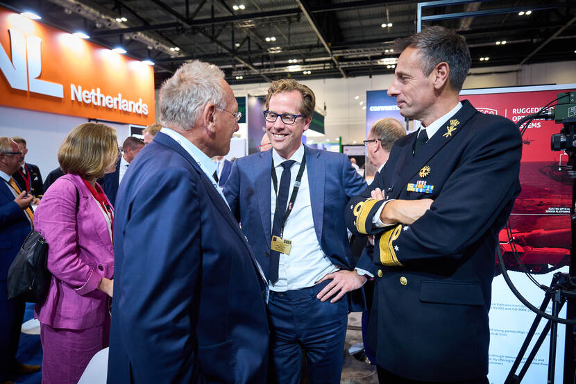Staatssecretaris Christophe van der Maat kwam speciaal naar Londen om die Nederlandse Defensieondernemers een hart onder de riem te steken. “Belangrijk, juist in deze tijd”, vindt hij. “We zijn bezig met het herstel, de wederopbouw van onze voorraden. Dat is hard nodig, want wie had twee jaar geleden kunnen voorspellen wat er nu in Oekraïne gebeurt. De DSEI biedt de kans om te overleggen met onze strategische partners en leveranciers.”