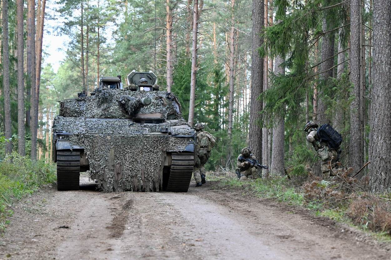 Op het Litouwse oefenterrein Pabrade zijn regelmatig Nederlandse militairen van de NAVO-missie eFP te zien, zoals ook deze week tijdens de oefening Cobra Prepare. In de Litouwse bossen kan je je goed verbergen voor ‘de vijand’. Zoals deze CV90 die met camouflagenetten op afstand moeilijk te zien en herkennen is. Maar dankzij de fotograaf, die het pantservoertuig en de uitgestegen militairen juist goed in beeld wilde brengen, kunnen wij het gevaarte goed zien. Waarvoor dank!