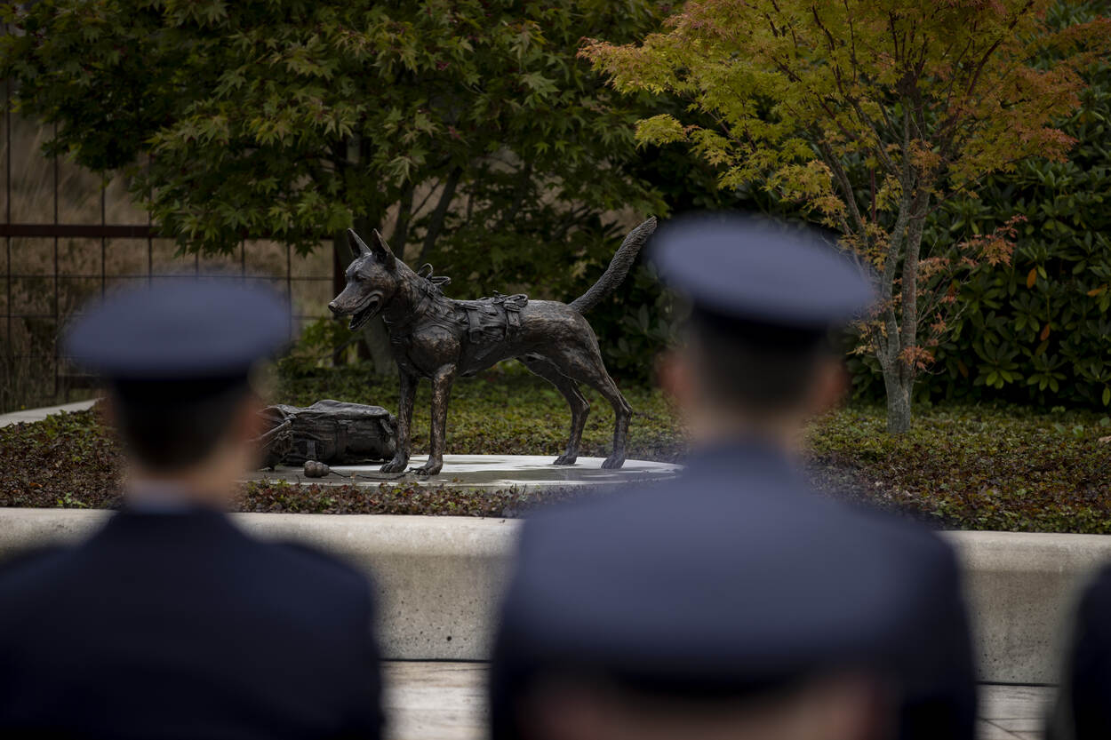 Na een uitzendmedaille en personeelsnummer is er nu ook een monument voor de diensthonden van Defensie. De luchtmacht heeft de gedenkplek maandag onthuld op voormalig Vliegbasis Soesterberg. “Deze dieren zijn al sinds 1951 van onschatbare waarde voor de krijgsmacht en dat mag meer zichtbaar zijn.”