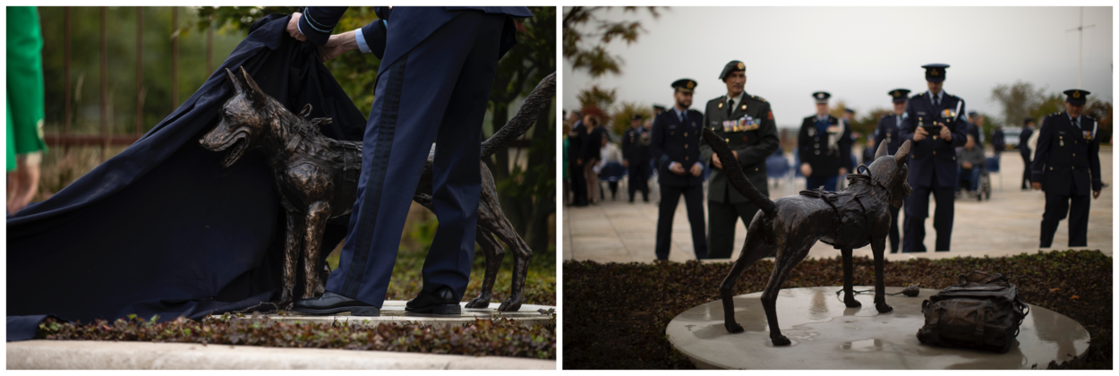 En die waardering werd deze week geconcretiseerd toen de luchtmacht officieel het hondenmonument onthulde op het luchtmachtplein van voormalig Vliegbasis Soesterberg.
