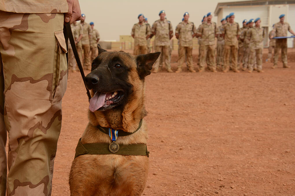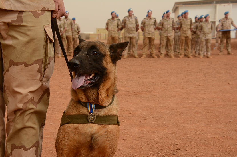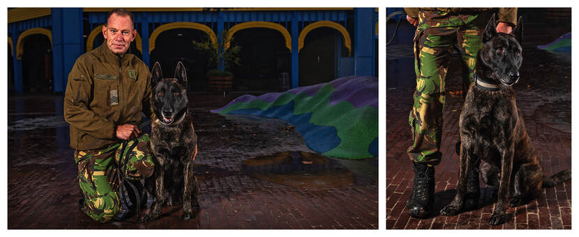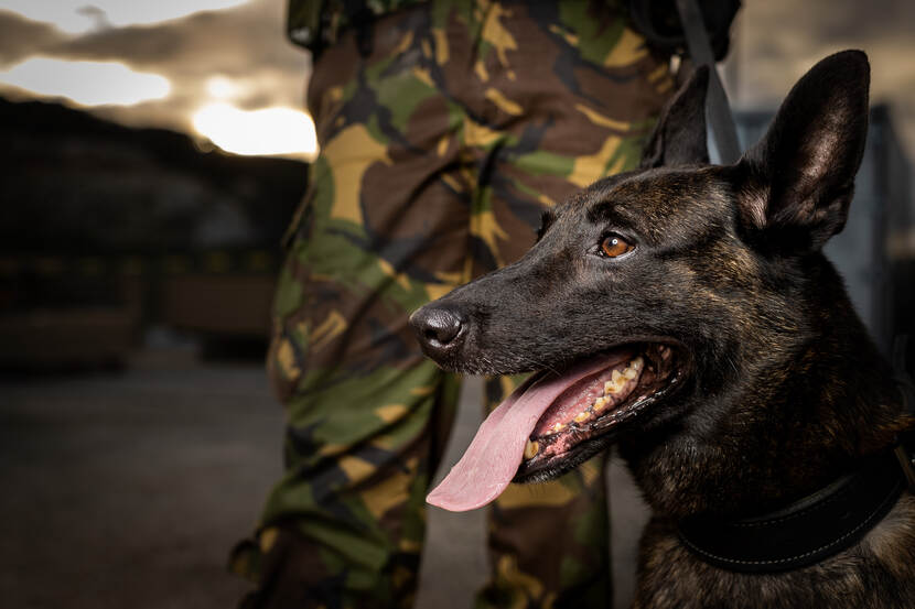 Diensthonden van Defensie hebben sinds kort ook een personeelsnummer, net als alle medewerkers. Ook hebben ze wettelijk gezien allerlei rechten zoals goede voeding, een fatsoenlijk onderkomen en medische zorg. Sinds 2015 krijgen de viervoeters ook een uitzendmedaille, een penning aan de halsband. “Daar kwam destijds best wat kritiek op”, weet Van Kessel nog. “Wij zien honden als een hulpmiddel, terwijl ze in veel andere landen zoals Engeland en Amerika behandeld worden als collega’s."