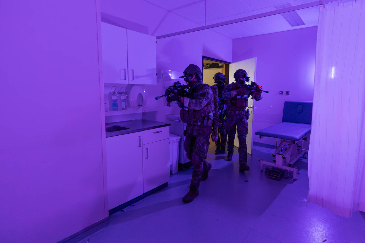 En dus vond er deze week een realistisch scenario plaats, waarbij een terroristische organisatie zich in het hospitaal schuilhoudt na een aanslag. Aan 12 Raiding Squadron de taak om de vijand uit te schakelen. Of om in marinierstermen te blijven; een close-quarters battle (CQB).