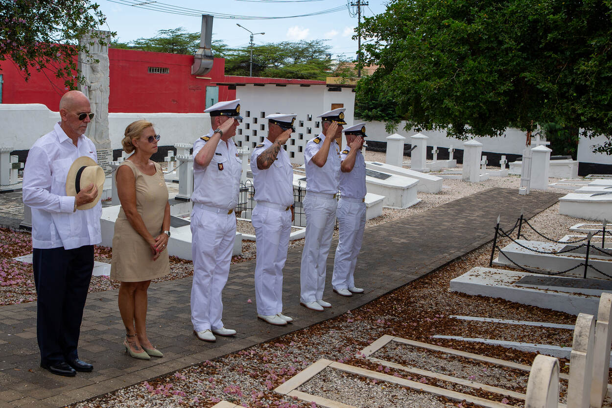 Twee marineduikers gingen zestig jaar geleden ‘even snel’ een wapen opduiken in de haven bij marinebasis Parera op Curaçao. Beiden kwamen echter niet meer levend boven water. Dit tragische ongeval werd deze week met een kranslegging en een toespraak herdacht door een afvaardiging van de Defensie Duikgroep (DDG) op de Militaire Begraafplaats aan de Roodeweg in Willemstad.