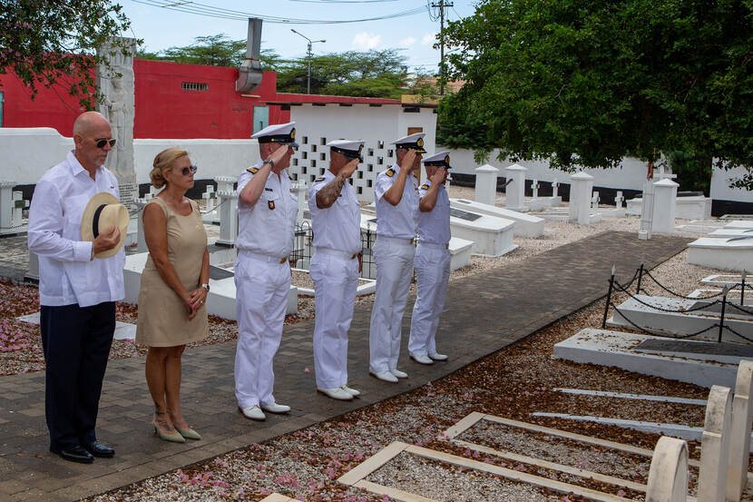 Het waren de 29-jarige kwartiermeester en duiker Herman Burger, en de pas achttienjarige matroos, kok en hulpduiker Gerrit ten Donkelaar die op 18 oktober 1963 tijdens hun werk het leven lieten. “Iedere derde donderdag in november herdenkt de DDG in Den Helder hen en nog drie andere marineduikers die sinds 1963 omkwamen tijdens hun werk”, vertelt kapitein-luitenant-ter-zee Sander Kool, commandant van de eenheid. “Nu we op het eiland zijn vanwege de oefening DIVEX CARIB 2023, het precies zestig jaar geleden is dat Herman en Gerrit sneuvelden en zij bovendien als enigen van de vijf hier op Curaçao liggen begraven, noemen we hier nu graag hun namen.”