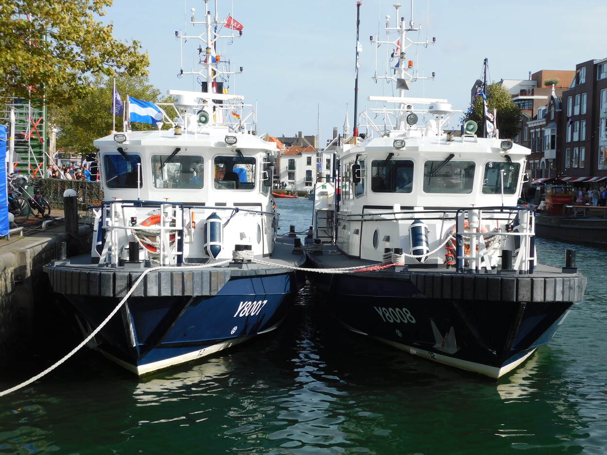 Soms kiest de marine niet voor de zee, maar het land. Begin oktober vertegenwoordigden drie schepen het krijgsmachtdeel bij de Furieade in Maassluis, een maritiem feest dat voor de 42ste keer plaatsgreep. Het ‘visitekaartje’ bestond uit de sleepbout Gouwe (A878) en de havenvaartuigen Marsdiep (Y8007) en Landtdiep (Y8008). Foto Freek Koning.