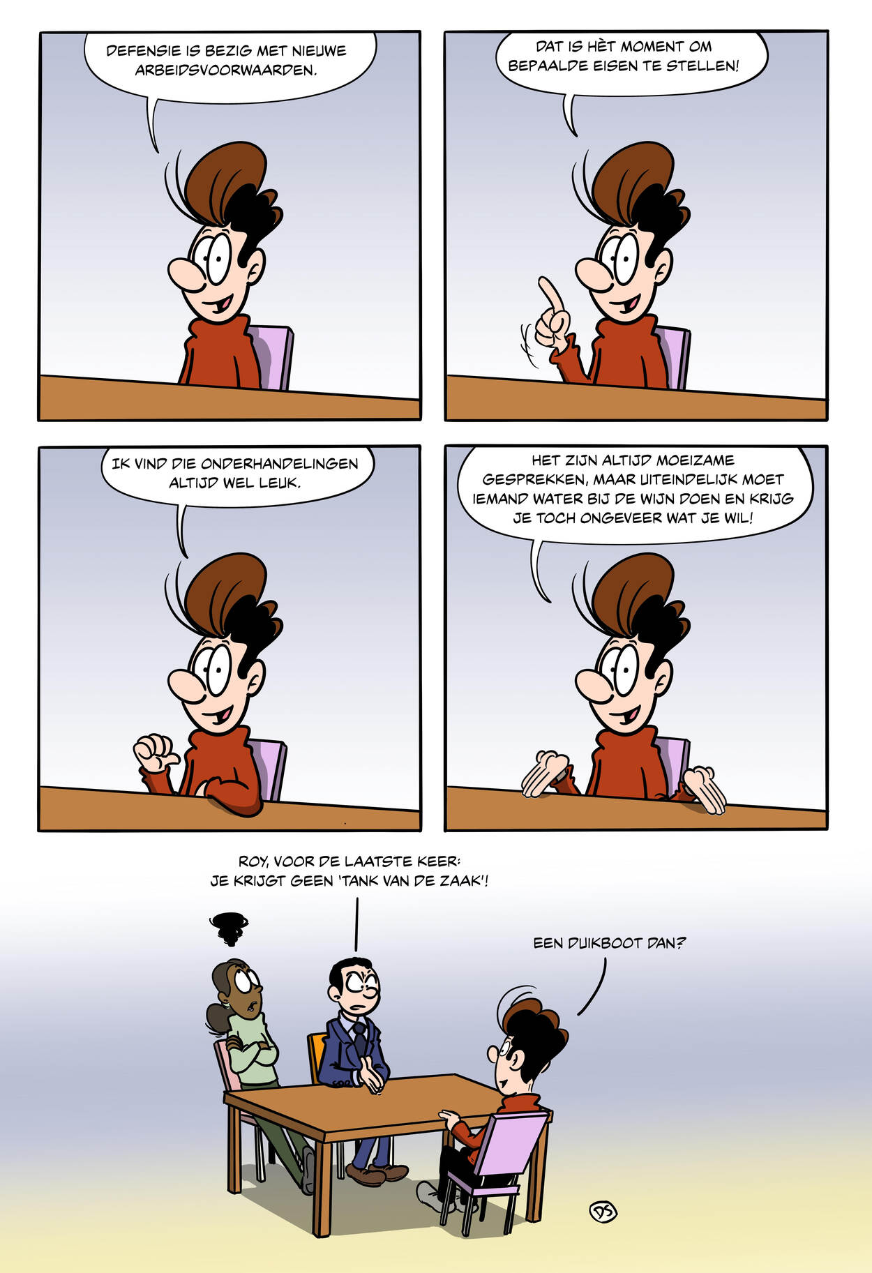 De Defensiekrant volgt de belevenissen van de ietwat onhandige en tikkeltje domme medewerker Roy. Zijn ervaringen bij de krijgsmacht worden iedere twee weken in deze strip verteld.