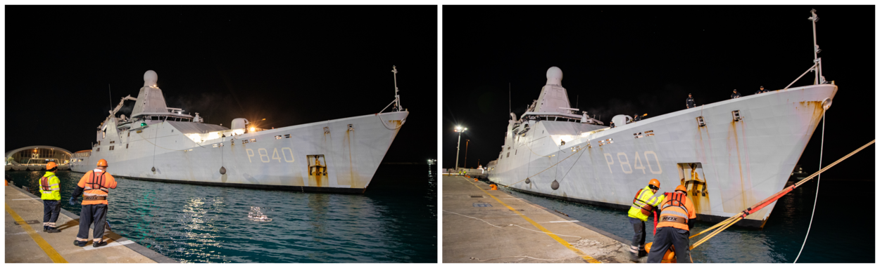 Na de eerste fase van de voorbereiding heeft de bemanning bij aankomst in Cyprus tijd voor een kort havenbezoek. Maar daarna staat er alweer van alles op het programma. “We gaan werken aan de integratie met het mariniersteam dat al gestationeerd is op het eiland voor eventuele inzet. We zullen onder meer evacuatie-oefeningen uitvoeren bij de kust. Daarbij trainen we met de NH90 en onze beide snelle FRISC-motorboten.”