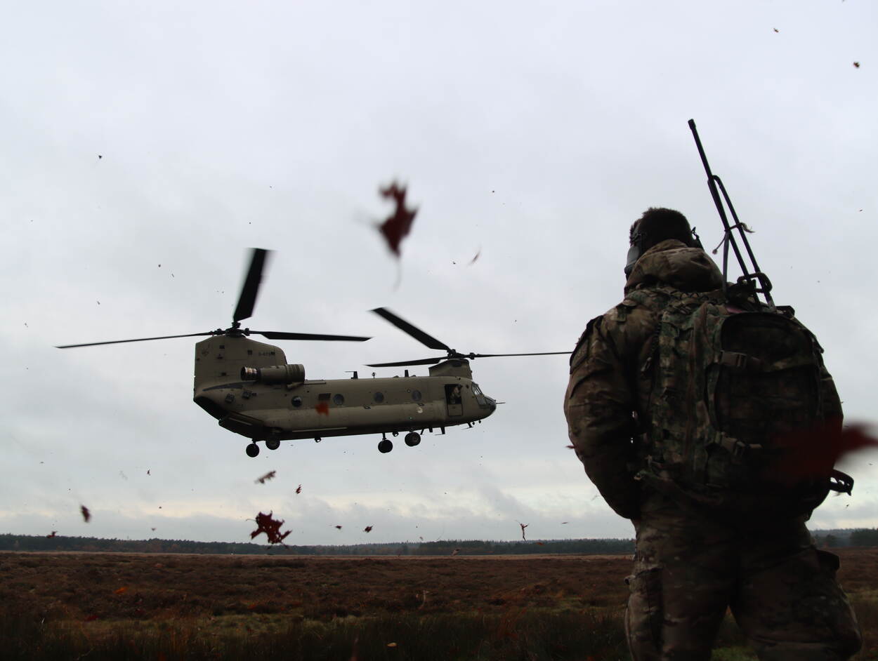 Een LENS! zonder een bijdrage van Brian van den Heuvel is bijna niet meer denkbaar. Tussen de proefwerken door waaide de scholier uit Scherpenzeel maar weer eens lekker uit op de Ginkelse Heide. Daar is immers altijd wel wat te fotograferen en ook nu trof Brian een oefenende eenheid. De bladeren waaiden ‘m om de oren en om de camera, wat deze herfstplaat wat extra kleur geeft.