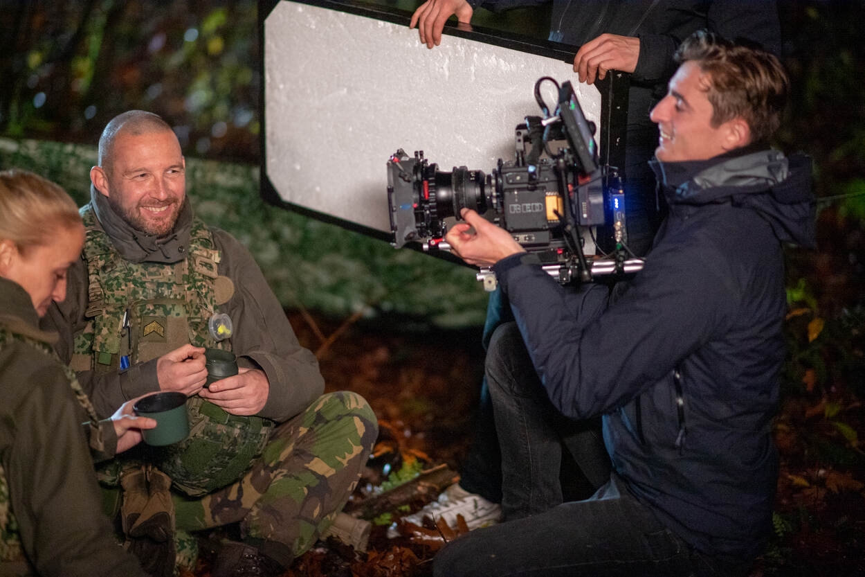 Het is altijd fijn om een e-mail met foto’s voor deze rubriek te ontvangen van majoor Fred Warmer. Hij dingt regelmatig mee naar belangrijke prijzen, zoals die van de Europese militaire pers organisatie EMPA. Of deze prent daarvoor in aanmerking komt, kun je betwijfelen, maar het biedt wel een opmerkelijk beeld. Het gaat hier om de opnamen voor een promotiefilm voor het Korps Nationale Reserve. Fred maakte ‘m op Legerplaats Oirschot tijdens de opnames van een serie inspiratievideos voor werkenbijdefensie.nl.