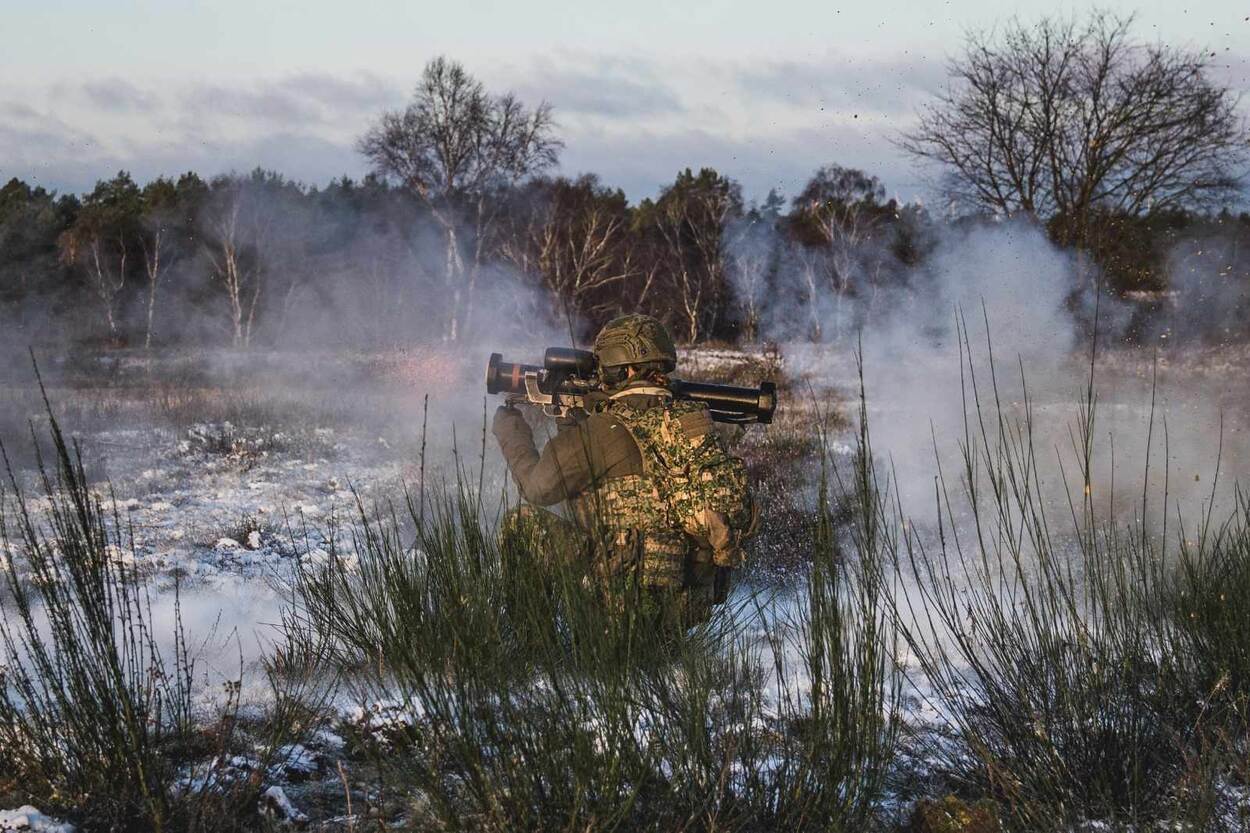 De lezers van onze bladen ergeren zich er dikwijls aan: de afkortingen (afko’s) die de respectieve OPCO’s (Operationele Commando’s, de krijgsmachtdelen) hanteren. Abracadabra voor de één, een abc’tje voor de ander. Zo is bij de landmacht het begrip SOB/SOMS algemeen bekend. Het staat voor ‘schieten op Bergen’ en ‘schieten op Münster-Sud’, twee befaamde schietbanen in Duitsland. Deze fraaie prent van korporaal der eerste klasse Roy van Veen is deze week op de baan in Bergen genomen, waar eenheden van 43 Gemechaniseerde Brigade aan het oefenen zijn. Op de foto vuurt een militair met een Panzerfaust 3, een draagbaar antitankwapen.