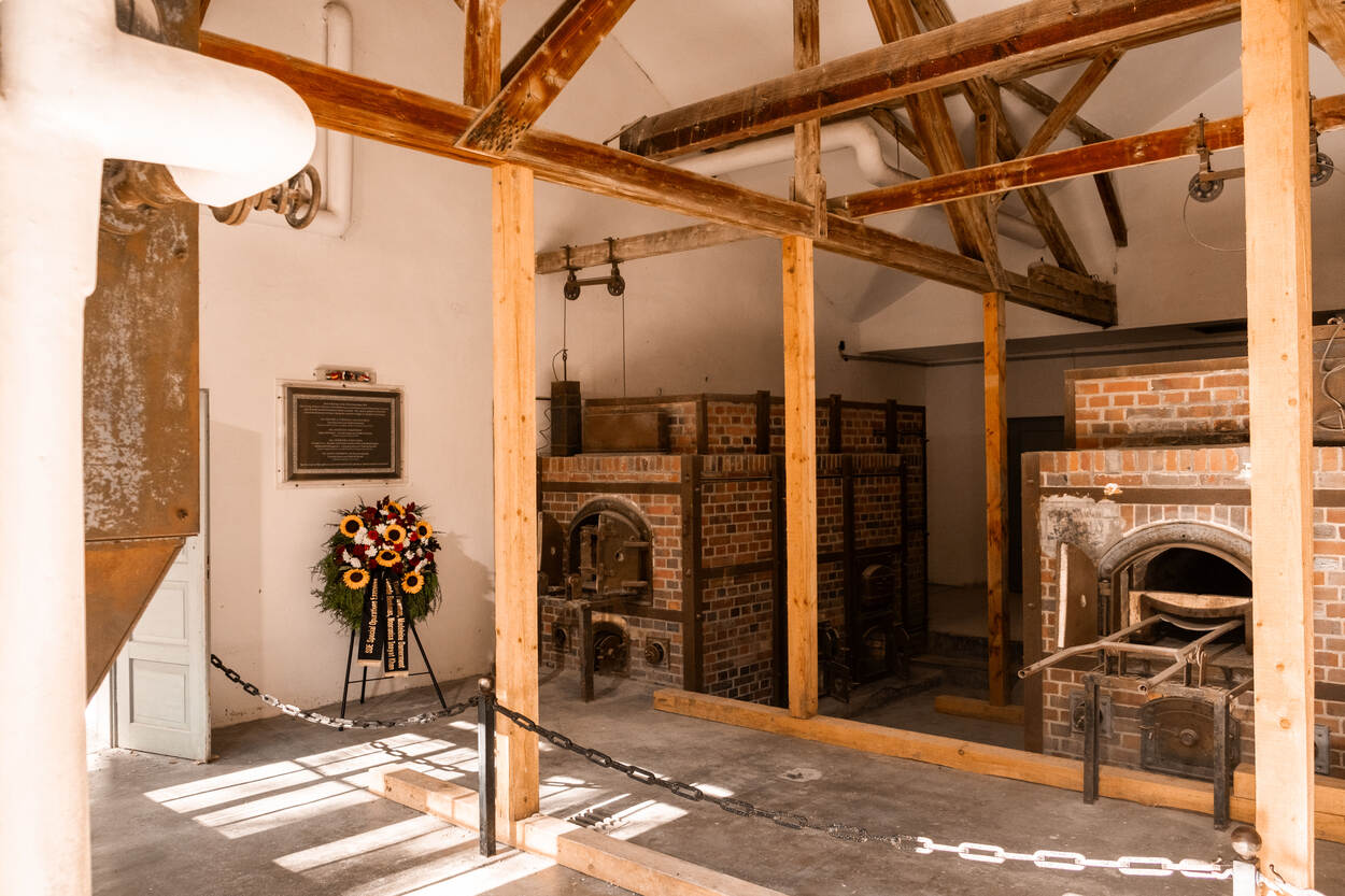 “Kijk, je ziet de kogelgaten nog zitten in de muur”, wijst Philip vanaf het veldje in Dachau. “De deur hiernaast leidt naar het crematorium. Na de executie zijn de lichamen van de vrouwen direct verbrand, zodat er niets van ze terug te vinden was. We kwamen er pas onlangs achter dat ze hier zijn geëxecuteerd en niet op de grotere plaats een stukje verderop. We vermoeden dat de vrouwen te hevig verzet boden. Vergeet niet, ze waren stuk voor stuk getrainde militairen. Waarschijnlijk hebben de bewakers het opgegeven en ze daarom hier al neergeschoten.”