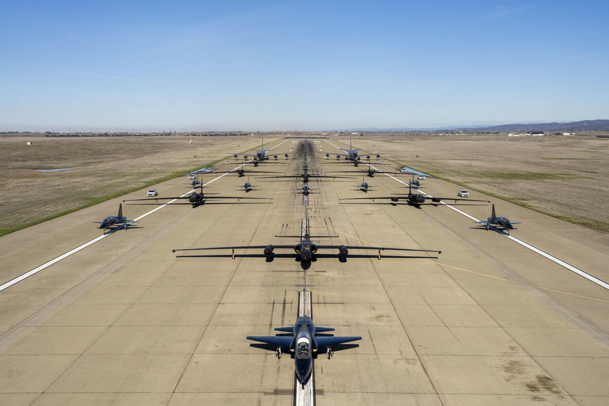 Lockheed U-2 ‘Dragon Ladies’, T-38 ‘Talons’ van het 1ste Reconnaissance Squadron en KC-135R Stratotankers van 940 Air Refueling Wing zorgen voor een visueel spektakel op Beale Air Force Base in Californië. De zogenoemde elephant walk laat zien welke toestellen de vliegbasis allemaal herbergt. Voor de jongeren onder ons: de U-2 is niet vernoemd naar de Ierse band van die naam. Het eerste toestel van dit type vloog al in 1955, toen Bono en zijn maten nog niet eens in de planning zaten. De prachtplaat is trouwens van senior airman Juliana Londono van de United States Air Force.