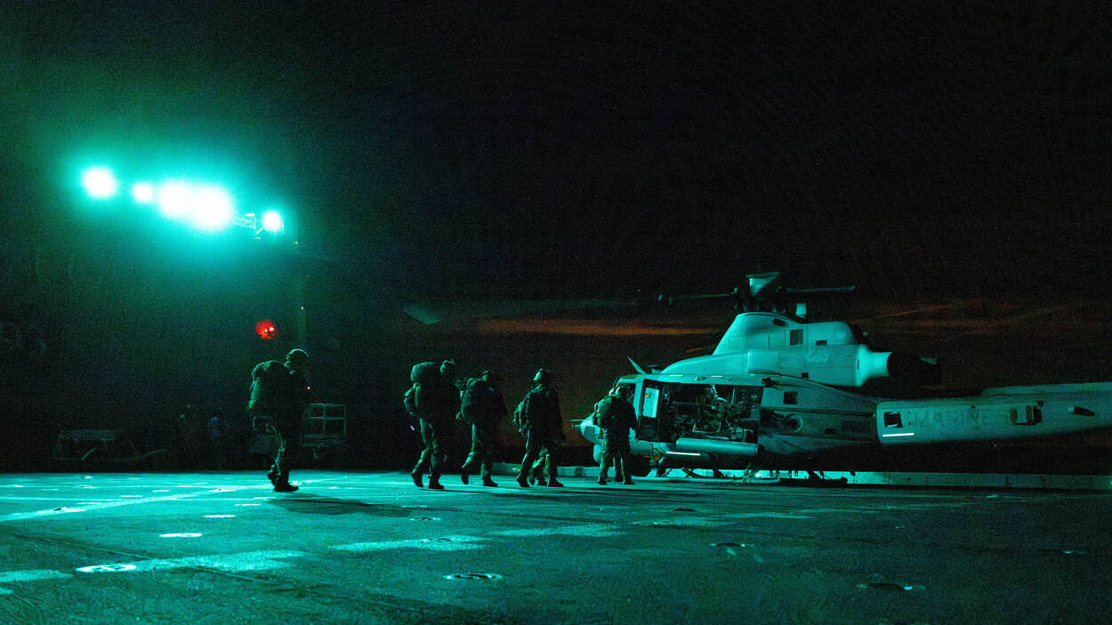 Communicatiespecialist 2e klas Evan Diaz had toevallig de camera bij de hand tijdens het vastleggen van dit tafereel. Mariniers van de verkenningscompagnie van 15 Marine Expeditionary Unit (MEU) bereiden zich voor om aan boord te gaan van een UH-1Y ‘Viper’. Die heli maakt deel uit van de ‘White Knights’ van het Marine Medium Tiltrotor Squadron (VMM) 165. Bij deze oefening is het amfibisch transportschip USS Somerset ingezet als platform voor de heli’s.