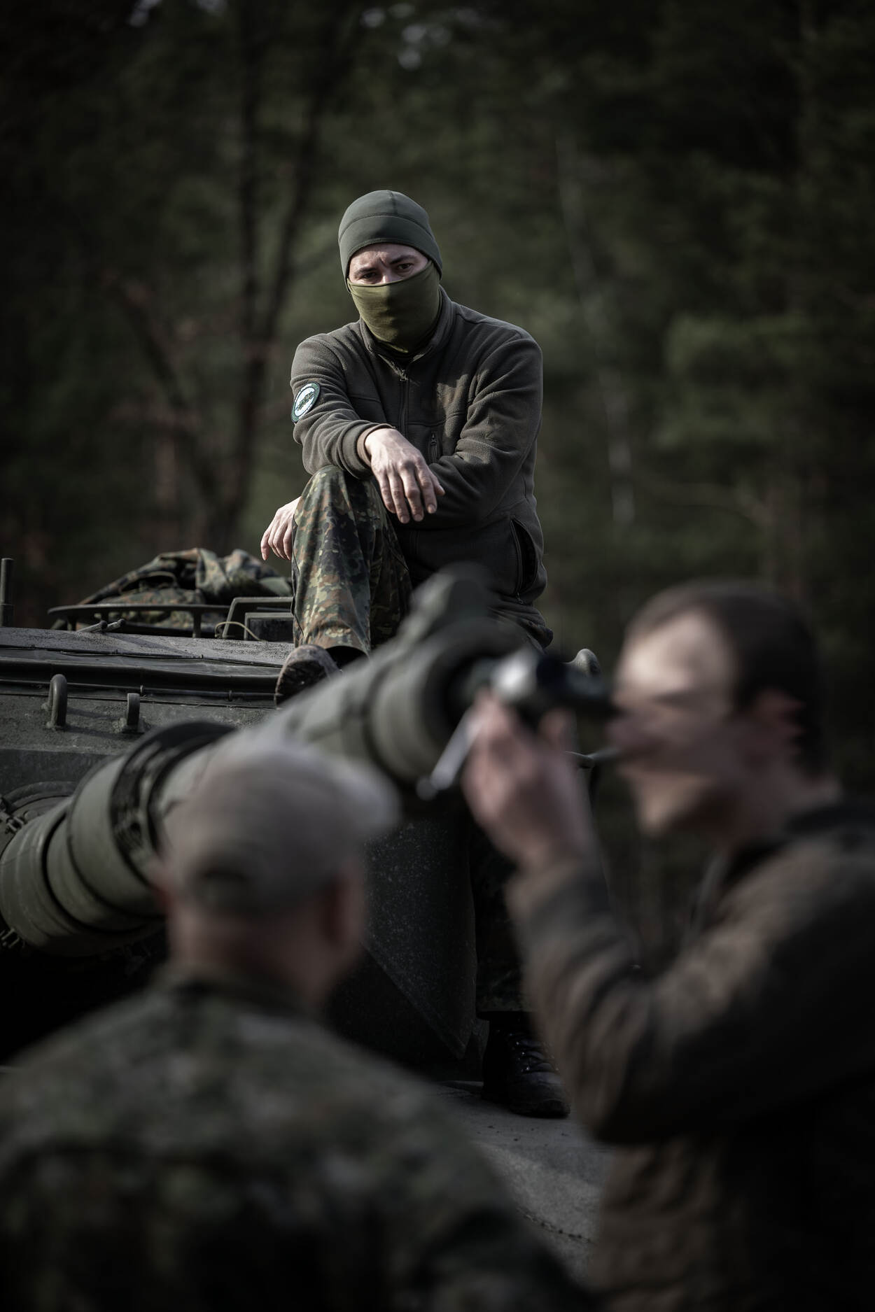 Behalve het trainen van Oekraïense infanteristen en personeel voor mijnenbestrijdingsvaartuigen, leiden Nederlandse militairen ook tankbemanningen op. Dat gebeurt in Duitsland, onder leiding van Denen en Duitsers. 414 Tankbataljon levert trainers voor acht lichtingen tankcrews. Vanaf februari komen de instructeurs uit verschillende Defensie-eenheden. Tijdens de tankopleiding krijgen Oekraïners lessen in techniek en tactiek. Ze volgen die elk vanuit hun eigen bemanningsrol: als commandant, schutter, chauffeur of lader. Op een oefenterrein voeren ze allerlei tactische handelingen uit en is het een kwestie van al vurend en manoeuvrerend zoveel mogelijk meters maken.