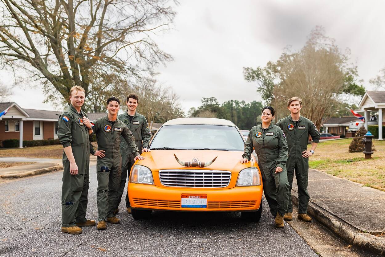 Op kazernes is een voorbijrijdende limousine doorgaans een zeldzaamheid, laat staan een oranje. Maar niet op Fort Novosel in de staat Alabama. Hier in het diepe zuiden van de Verenigde Staten is de aanblik van een opvallend gepimpte zesdeurs Cadillac de gewoonste zaak van de wereld. Het is een traditie die Nederlandse luchtmachtstudenten er al ruim twee decennia in ere houden.