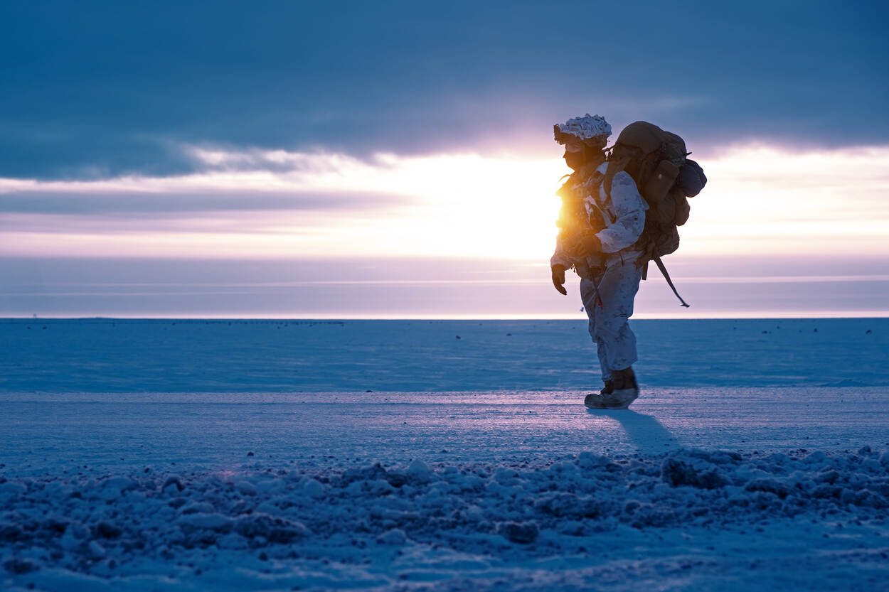 Een militair loopt over een winters landschap nabij Utqiagvik, Alaska. Het Joint Pacific Multinational Readiness Training Center hield daar een oefening en bereidt eenheden voor op optreden onder arctische omstandigheden. Niet zo vreemd als je bedenkt dat de afstand tussen het noordelijkste puntje van het Amerikaanse vaste land en Rusland zonog geen negentig kilometer bedraagt. Er zijn ooit plannen geweest om een tunnel met treinverbinding aan te leggen onder het stukje Beringstraat, maar die staan nu ongetwijfeld in de ijskast. De foto is van Brandon Vasquez.