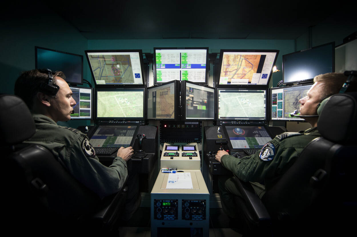 Zodra een Reaper in Câmpia Turzii is gelanceerd door het launch and recovery-personeel, nemen een vlieger en een sensor-operator de besturing via een satelliet in een mum van tijd over. En dat vanuit een als cockpit ingerichte zeecontainer op Leeuwarden… Een vliegtuig ‘op afstand’ besturen geeft een apart gevoel, weet luitenant-kolonel Jan ‘Muezli’ Ruedisueli, Commandant 306 Squadron. “Waarom weet ik niet precies. Het is moeilijk te omschrijven. Terwijl je stuurt, voelt het niet alsof je in een vliegtuig zit, omdat je immers op de grond bent. De rest is wel hetzelfde als vliegen in een gevechtsvliegtuig. Vliegen met de Reaper is een bijzonder avontuur. Dat dit allemaal kan!"