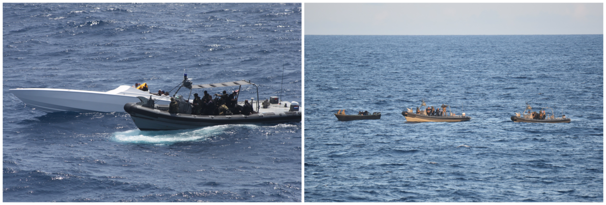 De drugs worden vaak vervoerd met zogenoemde go-fasts, snelle motorboten die vooral cocaïne en marihuana smokkelen. Onder meer de Koninklijke Marine werkt met de inlichtingen van het JIATF-S. Ondersteund door maritieme patrouillevliegtuigen (zoals de Dash 8 van de Kustwacht Caribisch Nederland), helikopters en FRISC’s surveilleert het stationsschip in het gebied op bekende smokkelroutes én gaat de bemanning op specifieke meldingen af. Concreet zijn dat er zo’n drieduizend per jaar, wat dus betekent dat er keuzes gemaakt moeten worden. In het uiterste geval stopt de marine de razendsnelle smokkelbootjes door op de motoren te schieten. “Het is een serieus kat-en-muisspel”, aldus Hansen.