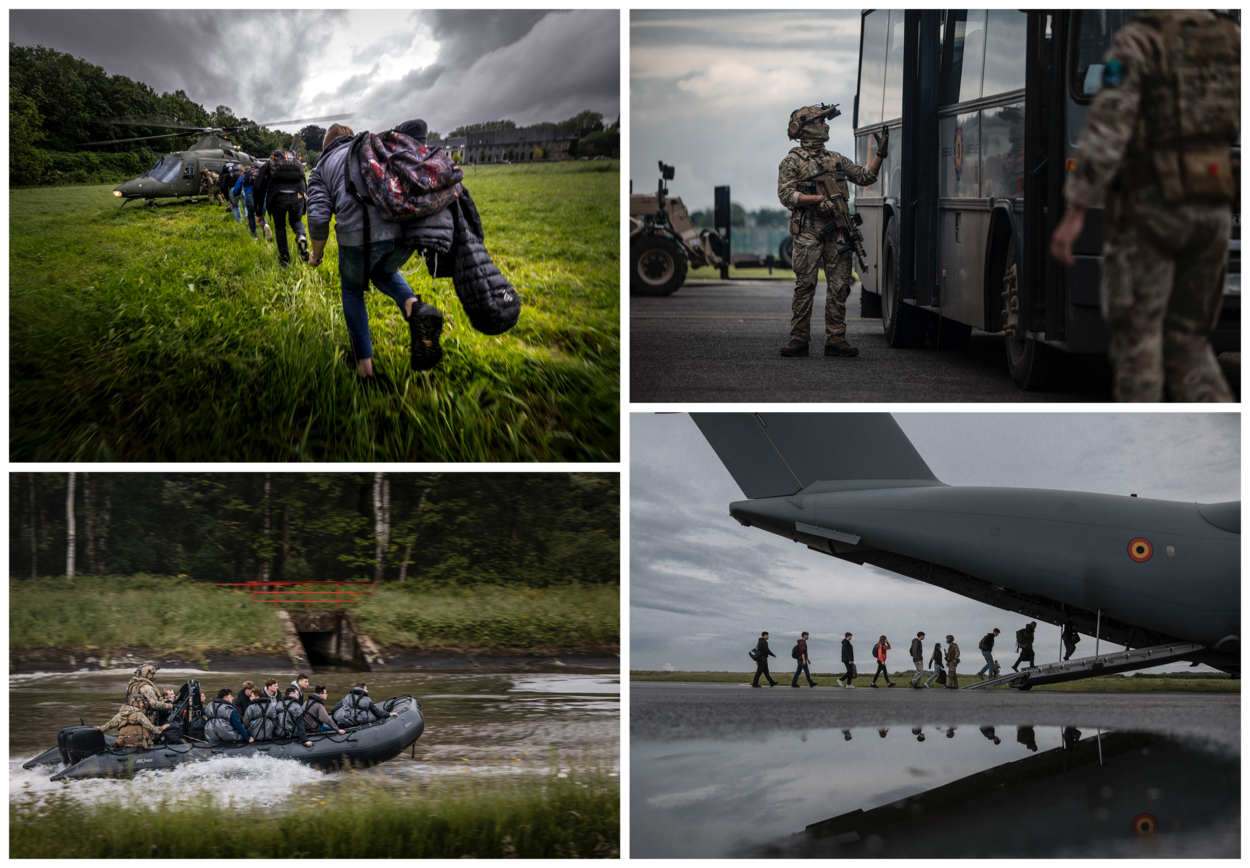 Onder de evacuees bevinden zich zo’n zeshonderd leerlingen van de Belgische opleiding Defensie en Veiligheid, aangevuld door reservisten. De scholieren maken tijdens het spelen van hun rol direct kennis met Defensie, legt Winnepenninckx uit. “Zo kunnen we laten zien wat Defensie is en kan.”