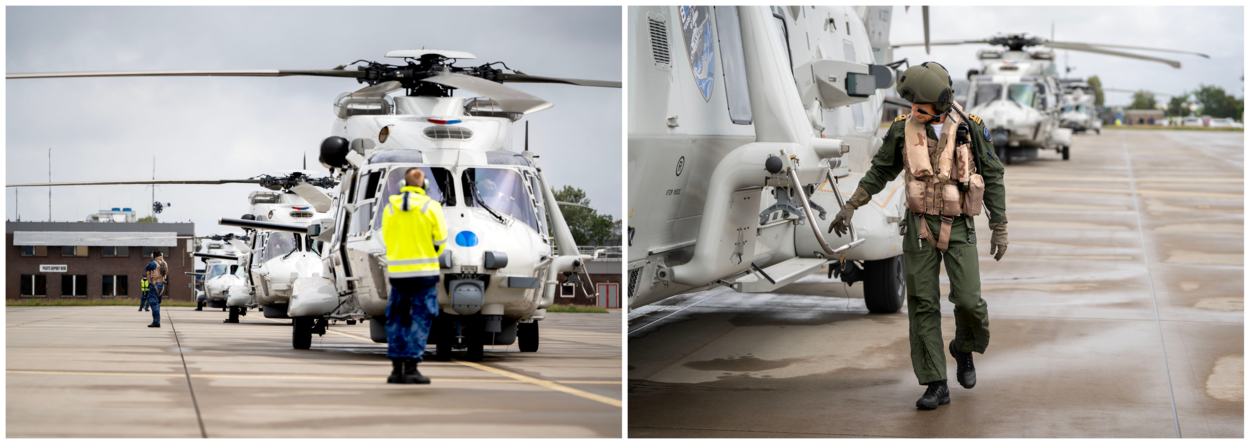 Een groot deel van de bestelde NH90’s staat op dit moment al op De Kooy. Een klein aantal wordt nog (terug)geleverd door NH Industries in Italië, die daar heen gingen vanwege een update. Eén staat er op Zr.Ms. Tromp en er zijn een paar voor groot onderhoud op Vliegbasis Woensdrecht. “Ja, deze actie betekent een grote inspanning, maar het is duidelijk dat we operationeel inzetbaar zijn voor onze taken”, aldus majoor der mariniers Jan Parlevliet, hoofd Operaties.