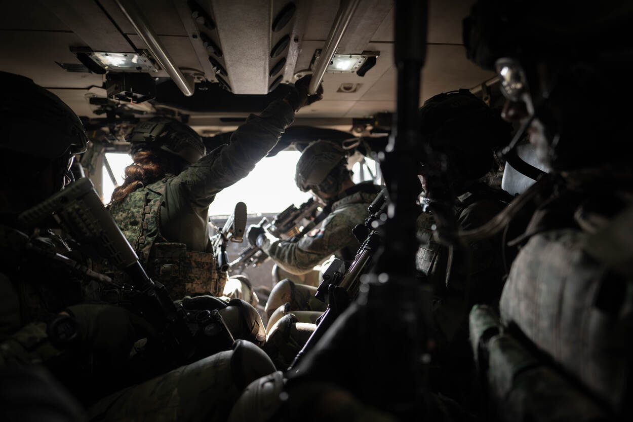Net als in de vorige editie van LENS!, ook dit keer weer een bijzondere minireportage van Sanne Kingma. Naast haar werk als korporaal-1 bij 13 Lichte Brigade pakt ze zo nu en dan haar camera mee om haar eenheid te fotograferen. In dit geval legde ze haar collega’s op de gevoelige plaat vast tijdens de jaarlijkse schietbaanoefeningen van 17 Pantserinfanteriebataljon Garderegiment Fuseliers Prinses Irene. Omdat er een noodzaak is om de infanterie in de toekomst te laten optreden met voertuigen, zijn de militairen voor de oefening uitgeweken naar het Duitse oefenterrein Duitse Bergen-Hohne. Hier kon de club voorwaarts gaan met uitgestegen pantserinfanterie, ondersteund door de Boxer. En met z’n allen in dat pantserwielvoertuig, dat is best een beetje krap.