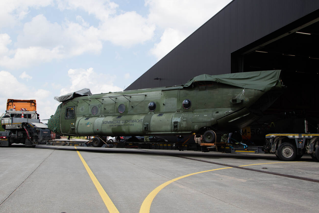 Een beetje een vreemd gezicht, een helikopter op een oplegger achter een auto in plaats van vliegend door de lucht. Maar vliegen… dat doet deze Chinook type D (D-663) niet meer. Manolito Jaarsma zag hoe de ‘Blizzard’ maandag 13 mei arriveerde op voormalig Vliegbasis Soesterberg. Vanwege de aanschaf van het nieuwe type Chinook werd dit exemplaar aan het Nationaal Militair Museum geschonken. Daar is-ie sinds deze week van dichtbij te bewonderen.