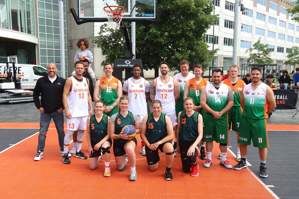 Deze sportieve foto werd ingezonden door oud-genist Johan Plaatsman, die zondag aanwezig was bij de Urban Sports Games in Almere. Je zou denken, wat heeft dit 3x3 basketbaltoernooi met Defensie te maken? Nou, er deden vier teams met militairen aan mee; drie van de landmacht en een team met drie mariniers en een collega van de marechaussee. “De wedstrijd werd gebruikt om de teams optimaal voor te bereiden op het militair wereldkampioenschap basketbal in Servië, later deze maand. Hier doen de best militaire basketballers ter wereld aan mee”, weet sportinstructeur sergeant-majoor van de mariniers Bas.