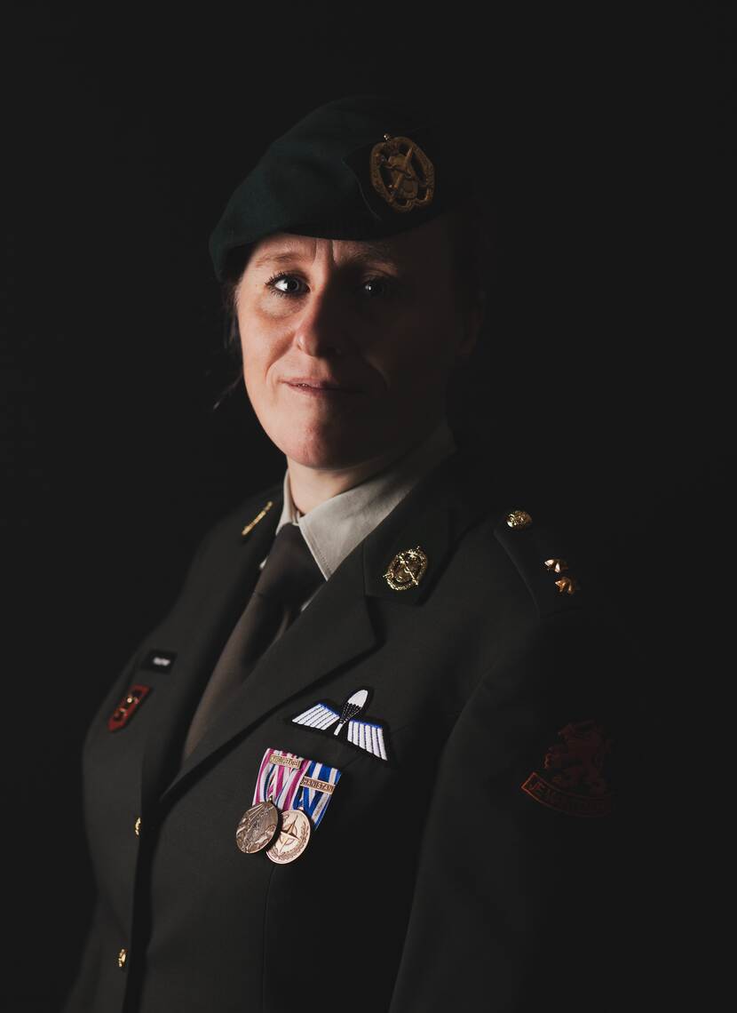Jennifer fotografeert normaliter kinderen, zwangere vrouwen en baby’s, maar speciaal voor haar zus maakte de fotograaf onlangs een uitstapje. “Eerste luitenant Anne heb ik onlangs in uniform voor de camera gezet. Ze werkt al bijna achttien jaar bij Defensie.” Jennifer benadrukt hoeveel respect ze heeft voor de prestaties van haar zus. “Door de onderscheidingen op haar jasje kun je zien waar ik zo trots op ben, vooral haar inzet in Afghanistan. Dat vind ik zo mooi aan de krijgsmacht, de uniformen waar eigenlijk geen uitleg bij nodig is. De medailles vertellen het verhaal.”