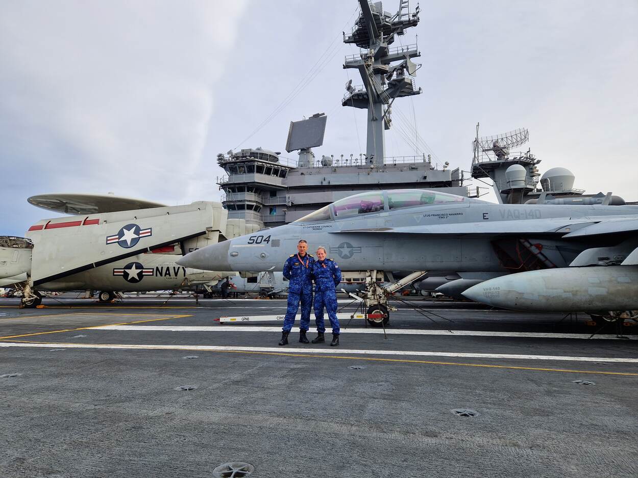 Aan boord zijn de Nederlanders omringd door bijna vijfduizend Amerikaanse marinecollega’s. Ter vergelijking: de Nederlandse marine heeft in totaal circa 7.400 militairen in dienst. “En dan is het schip nog niet eens volledig gevuld.” Hopman-Calis omschrijft haar tijd aan boord als “heel leuk en erg interessant.” Overste Zijlstra doet daar een schepje bovenop: “Wat is het hier gigantisch; het is overweldigend.”