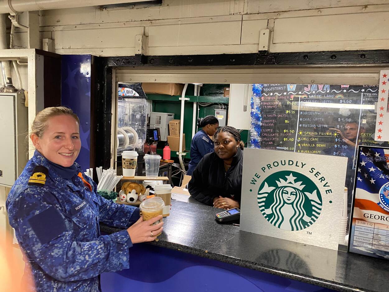 Niet verwonderlijk dat de hangar onder het vliegdek ook vier keer groter is dan de hanger op het Maritiem Vliegkamp De Kooy waar de Nederlandse NH90-maritieme gevechtshelikopters zijn gestationeerd. Zijlstra: “De eerste paar dagen keken we onze ogen uit, gek genoeg lijkt het nu de normaalste zaak van de wereld. Maar we weten dat dit allerminst het geval is.” Hopman-Calis vult aan: “Je valt van de ene verbazing in de andere. En als je denkt dat het niet gekker kan; er is ook een Starbucks aan boord.”
