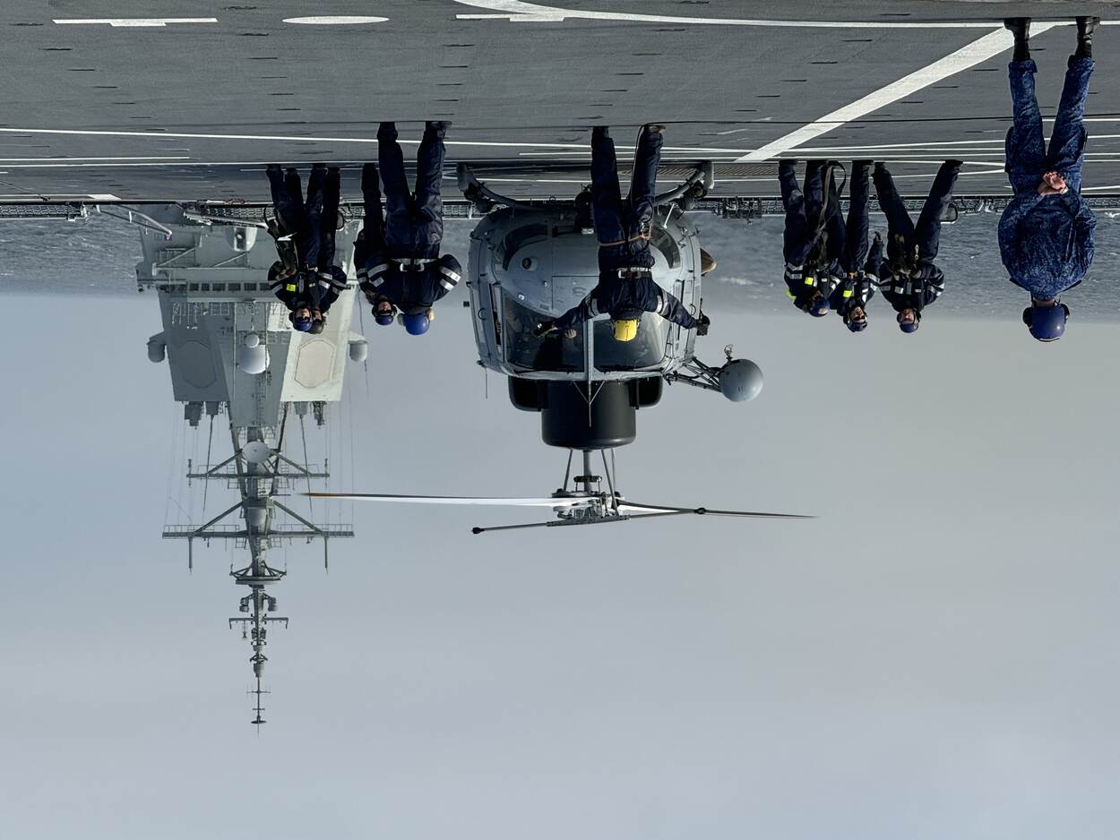 De bemanningsleden en de opstappers zagen van dichtbij het amfibisch vliegdekschip Juan Carlos 1 van de Spaanse marine en een begeleidend fregat. Op het dek van de Johan de Witt landde vervolgens een Spaanse AB-212 boordhelikopter om een aantal officieren op te halen voor een bespreking. Damen stond er met zijn neus bovenop en wist het geheel mooi vast te leggen met zijn smartphone.