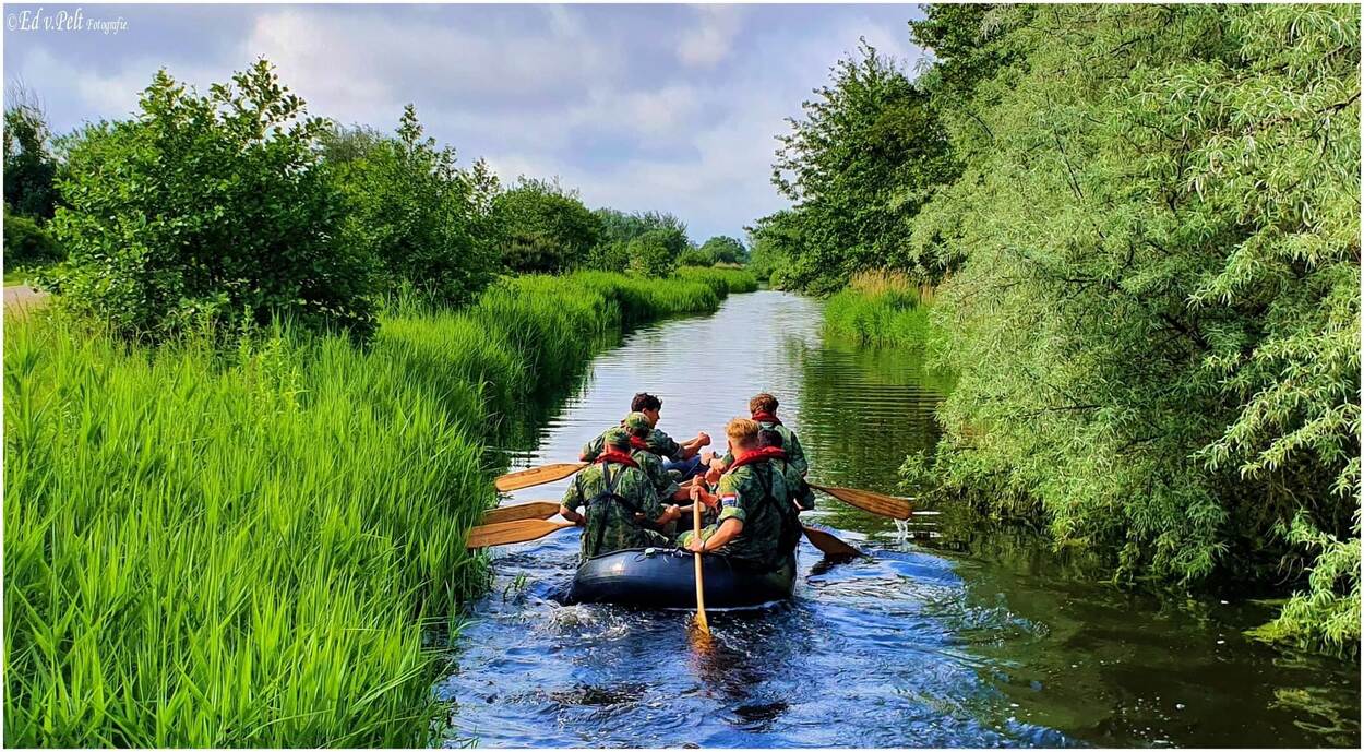 Een idyllisch lenteplaatje, niet? Dat de roeiers geen gasten zijn van de nabij gelegen camping moge duidelijk zijn. Voor deze VeVa-mariniers was de vaartocht serious business. Ze oefenden hun vaardigheden in en rondom de wateren bij Den Helder. Mike van Berkel kwam de foto op internet tegen en vroeg fotograaf Ed van Pelt of hij deze mocht insturen naar de fotorubriek van de Defensiekrant. Leuk mannen, bedankt. Een beetje goed-weer-vibes in deze wisselvallige zomer kunnen we vast allemaal wel gebruiken!