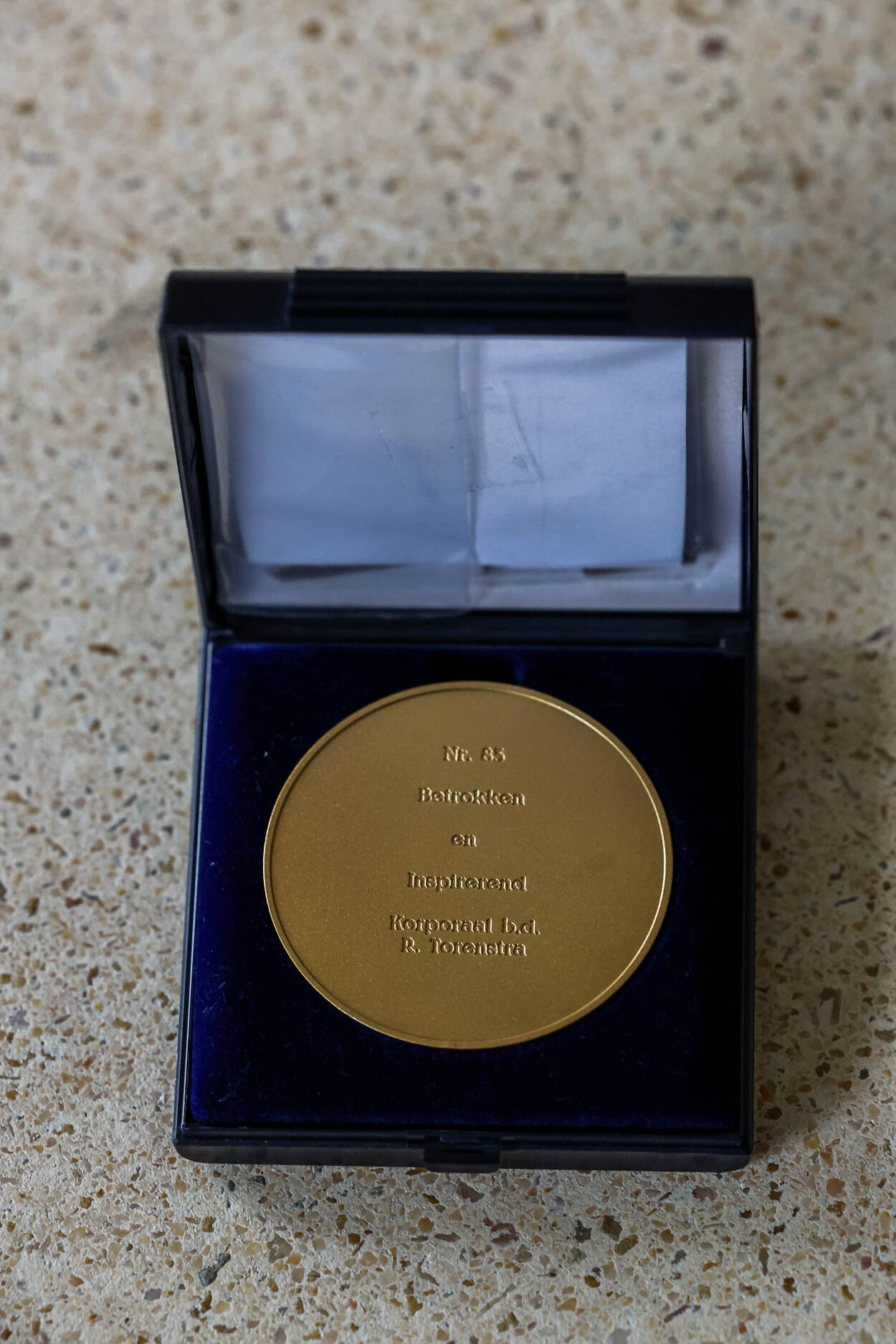 Het verhaal van Torenstra is reden genoeg voor het toekennen van het 83e exemplaar van de legpenning in goud, waarmee hij vanmorgen totaal werd overvallen. “Ik ben sprakeloos en dat gebeurt niet gauw.”