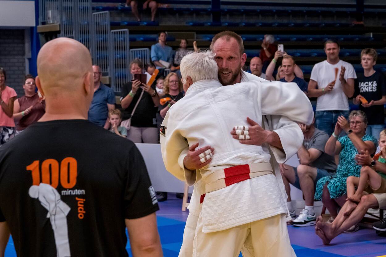 Er zijn in den lande veel mooie initiatieven om geld in te zamelen voor veteranen. We kunnen onmogelijk aan al die evenementen aandacht besteden, maar voor de Voorhoutse sportschoolhouder Johan Zagers maken we een uitzondering. De zoon van onze veel te vroeg overleden collega André Zagers heeft zaterdag een ‘honderd-minuten-judo-challenge’ volbracht. De opbrengst van de uitdaging, ruim 5000 euro, komt ten goede van Stichting Hulp voor Helden. Met zijn prestatie wil Johan aandacht vragen voor veteranen en hun thuisfront. Als kind van een militair heeft Johan op jonge leeftijd meegemaakt wat de impact van een uitzending in oorlogsgebied kan zijn. Onze fotograaf Keesnan Dogger maakte het beeld, waarop de uitgeputte Johan omhelsd wordt door zijn leermeester, sensei Jan Barends.