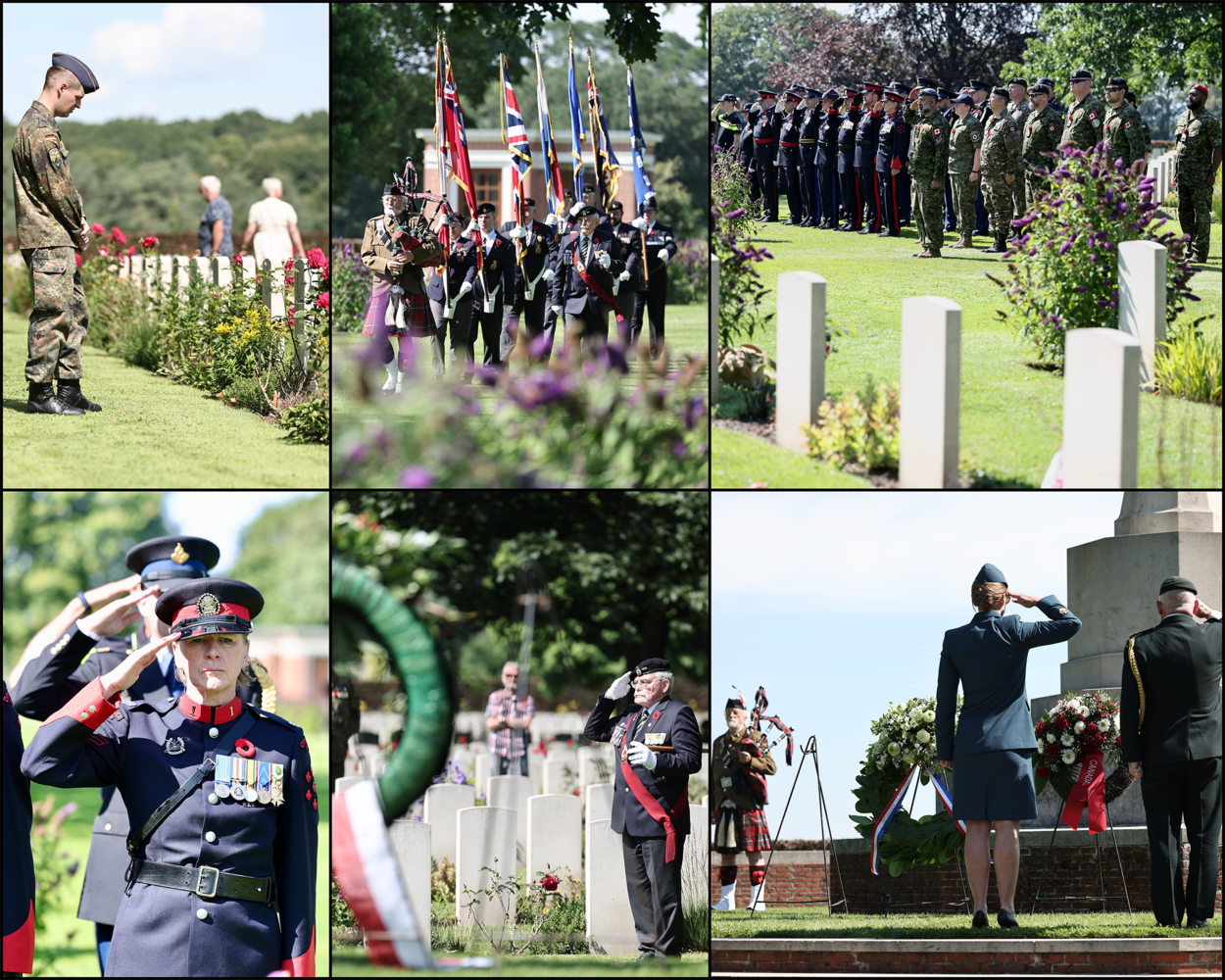 Voor het Canadese detachement staat vandaag de herdenking van hun landgenoten centraal, die tijdens de Tweede Wereldoorlog sneuvelden in de regio. Er liggen 2.617 strijders begraven op de Canadese Erebegraafplaats aan de Zevenheuvelenweg in Groesbeek. Het is een korte maar indrukwekkende herdenking, waaraan ook militairen uit andere landen deelnemen. Voorgaande jaren was deze herdenking altijd op de donderdag, de dag van Groesbeek, maar om logistieke redenen is dat verplaatst naar de maandag.