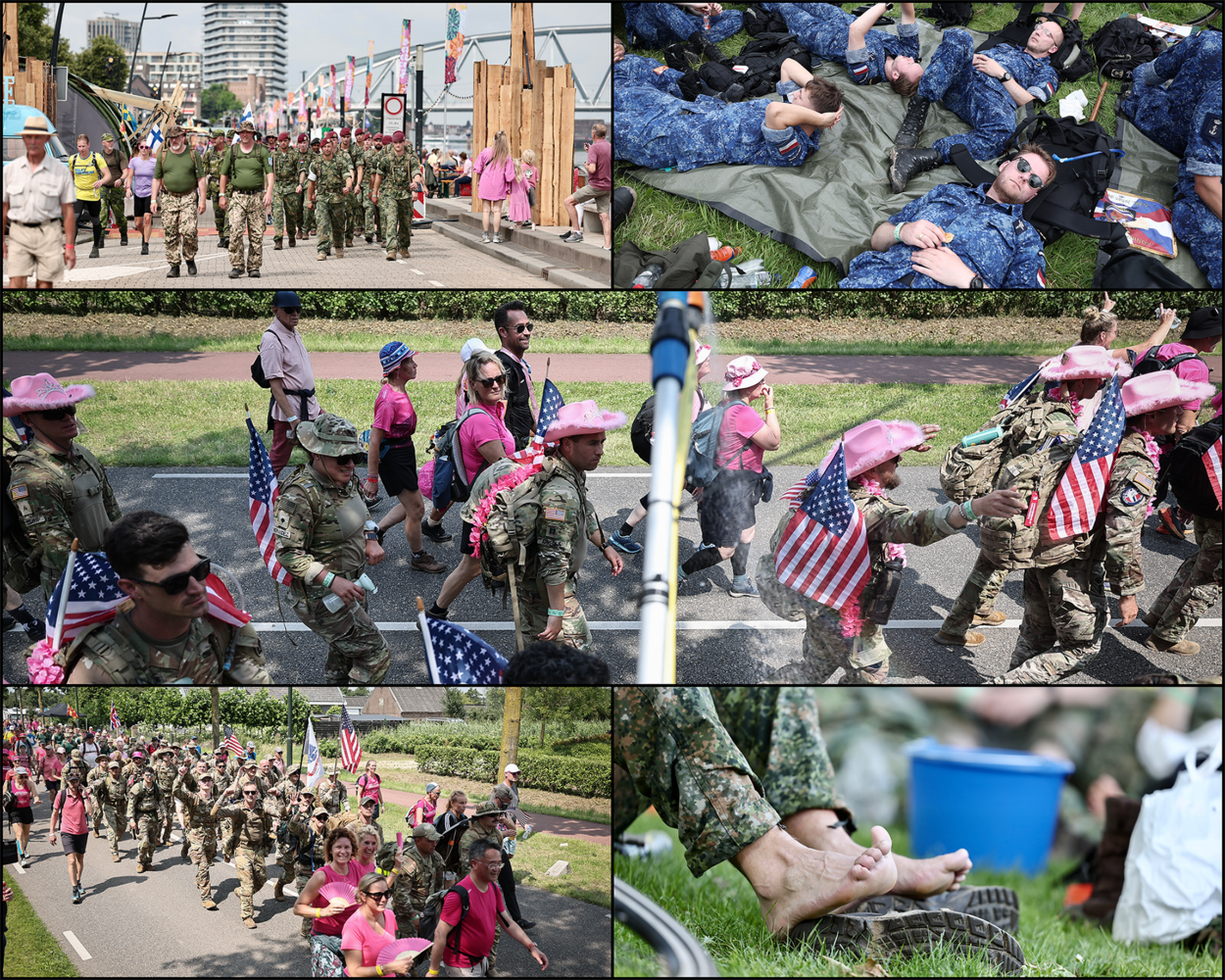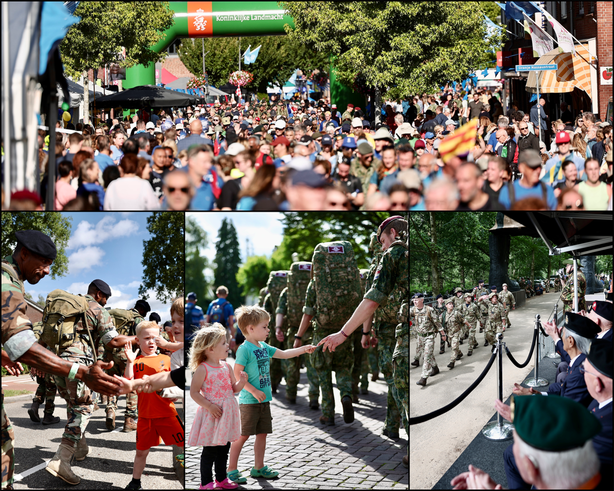 Het is alweer bijna een week geleden dat 47.000 wandelaars begonnen aan de 106e editie van de Nijmeegse Vierdaagse. Van de 2.413 Nederlandse militairen die dinsdag startten, wisten 1.958 het felbegeerde kruisje (of equivalent) in ontvangst te nemen. De week samenvatten is bijna onbegonnen werk. Daarom nemen we u in sneltreinvaart mee langs de hoogtepunten.