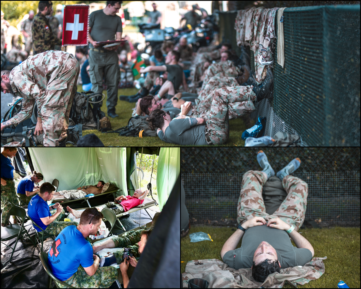 Het parcours van de donderdag is zwaar. Op de rustpunten wordt goed gerust en blaren en andere wonden verzorgd.