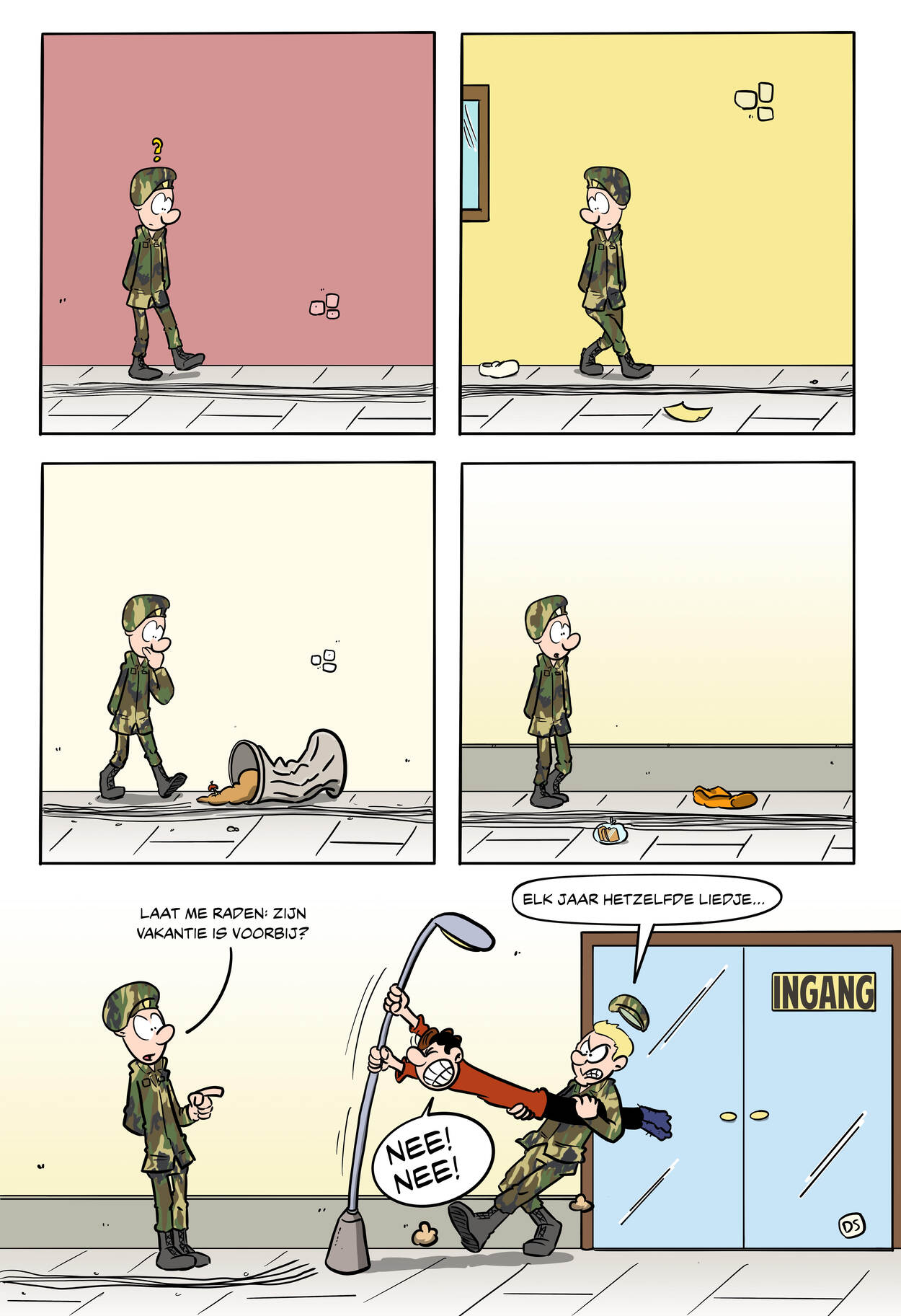 Disclaimer: Deze strip is niet bedoeld als uiting of vertaling van defensiebeleid. Het zijn komische interpraties van de werkelijkheid, op persoonlijke titel van de tekenaar.