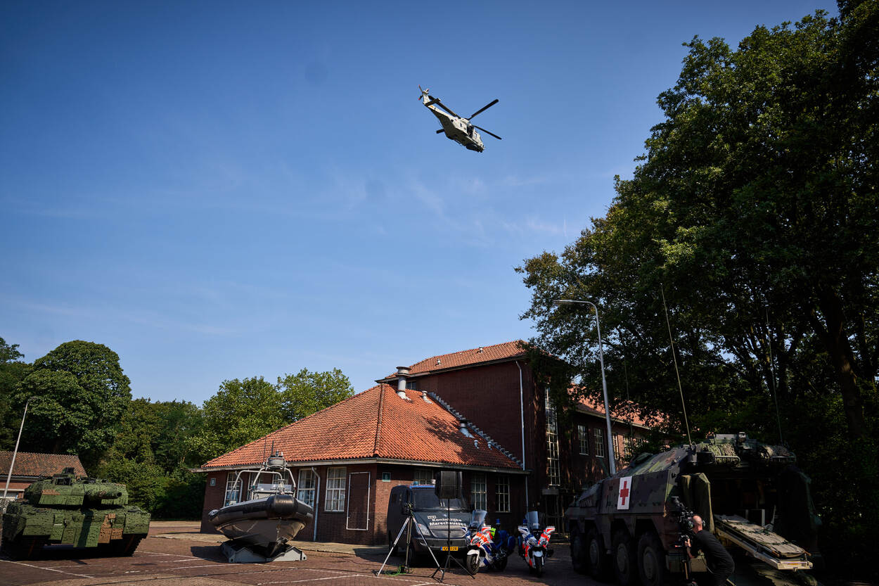 Opzwepende muziek bij de presentatie van de Defensienota 2024. Een heftig klapwiekende NH90 helikopter die een militair dropt om het document te overhandigen aan minister Ruben Brekelmans en staatssecretaris Gijs Tuinman. Onder het motto Sterk, slim en samen presenteerde Defensie gisteren met elan de investeringsplannen voor de toekomst.